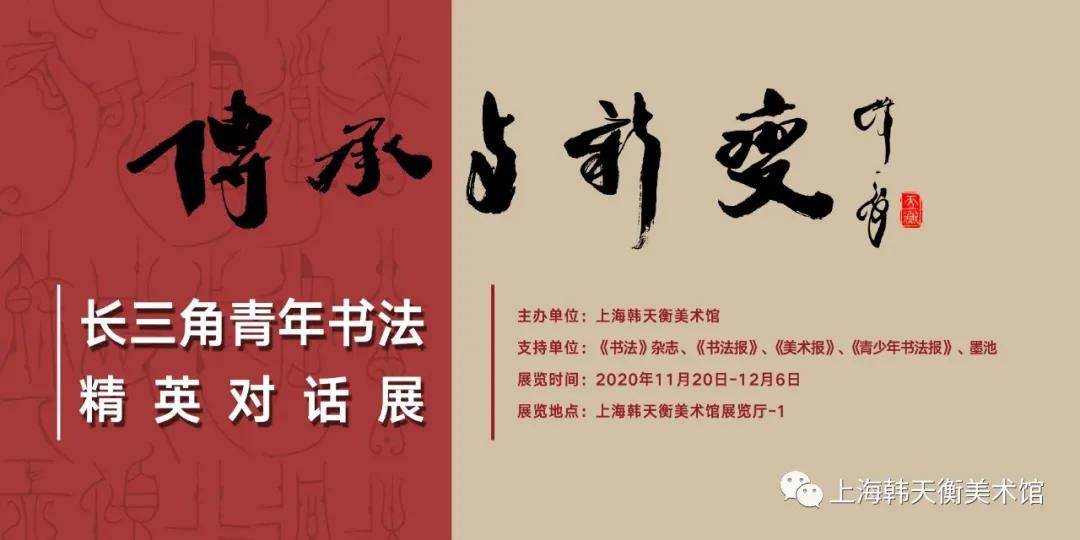 传承与新变 ——长三角青年书法精英对话展 主办单位:上海韩天衡美术馆 支持单位:《书法》杂志、《书法报》、《美术报》、《青少年书法报》、墨池、新华在线网、华夏访谈网 展览时间:2020年11月20日-12月6日 展览地点:上海韩天衡美术馆临1展厅