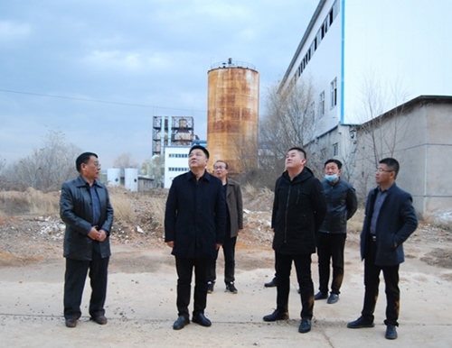 图为魏振东书记(前左二)在普铁整治问题现场查看一处停产车间的彩钢瓦房顶安全隐患