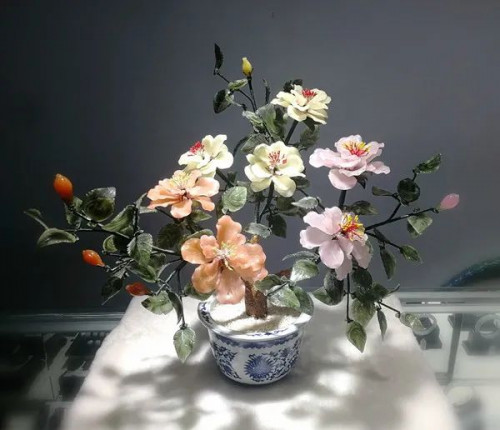 《繁花似锦》赏瓶 北京玉雕技艺传承人张铁成带来玉雕重器《冬奥会徽宝》
