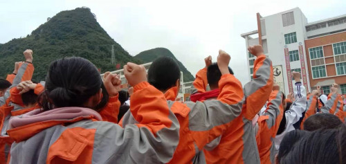 大家把手高高的举过头顶,双手握拳,我们一起发誓,我们一定会感恩父母,苍天在上,感恩老师!感恩祖国,感恩社会!