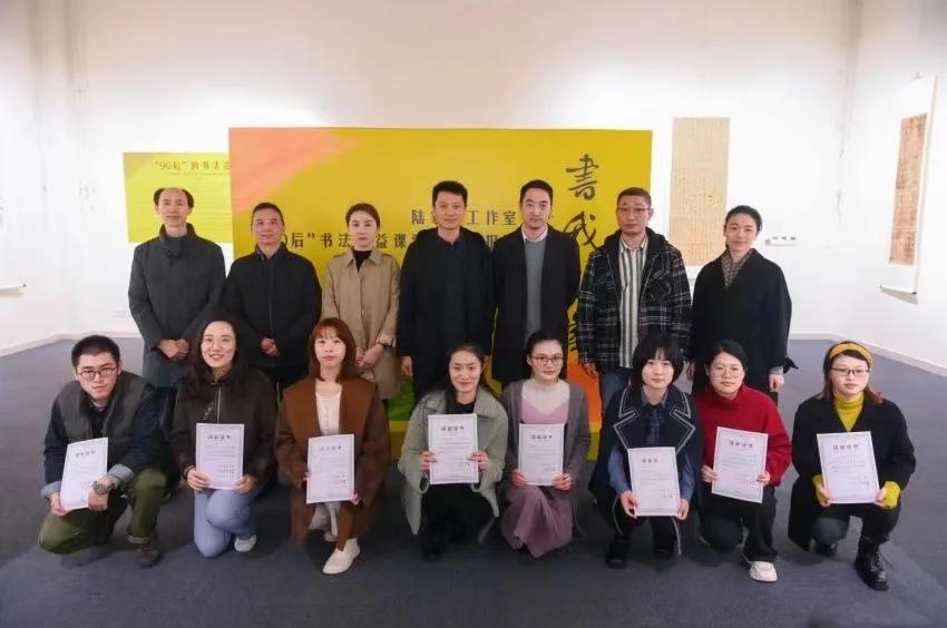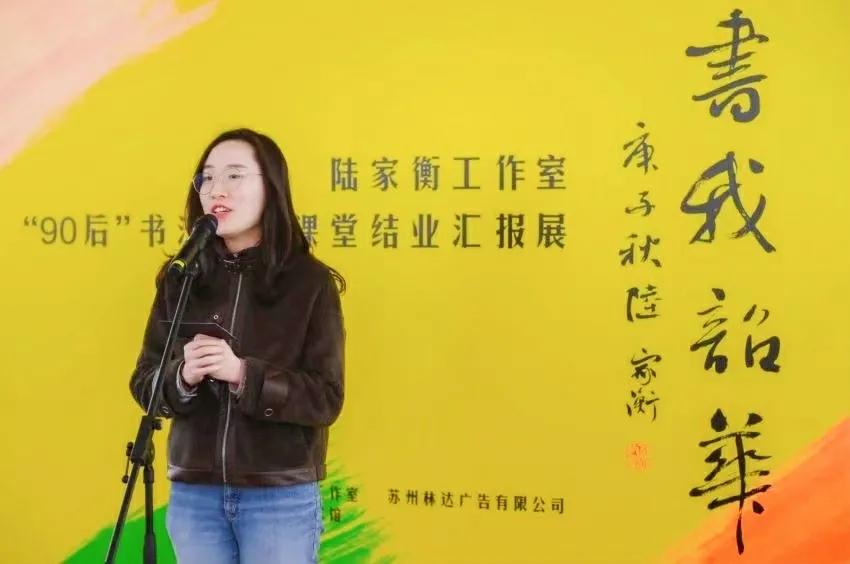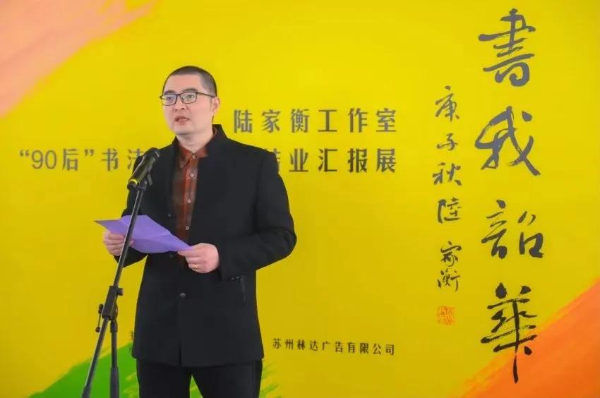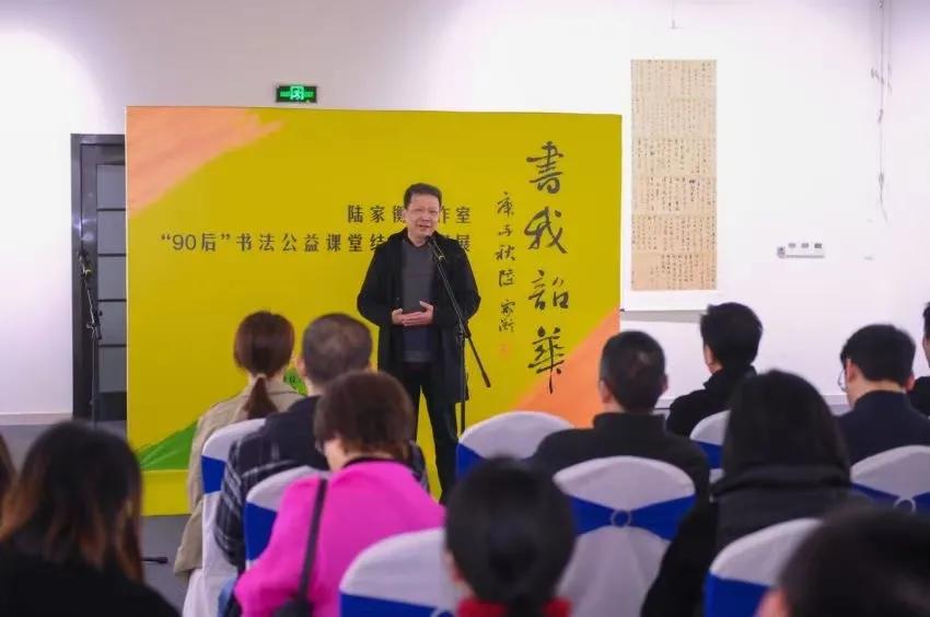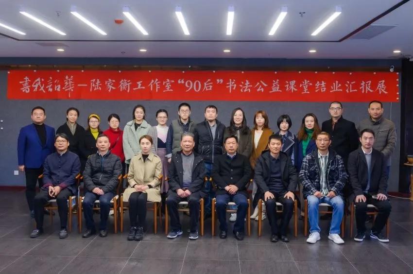 书我韶华 陆家衡工作室“90后”书法公益课堂 结业汇报展开幕式 11月30日下午,书我韶华——陆家衡工作室“90后”书法公益课堂结业汇报展开幕式在昆山市观林美术馆举行。昆山市书协名誉主席、陆家衡工作室导师陆家衡,昆山市文联党组书记、市文联主席王豪,昆山市卫生与健康委员会副主任朱敏,昆山市团市委副书记范茜茜,昆山市文联副主席、市书协主席王金春,新华在线网副主编祁成志,苏州林达广告有限公司董事长凌勇,昆山君周文化商务咨询有限公司董事长、观林美术馆馆长孙锋,昆山君周文化商务咨询有限公司副总经理盛丹娅,昆山高新区文化体育站副站长徐肖军,陆家衡工作室“90后”书法公益课堂助教王洁、陈海兵、吕昭成、浦建青,及陆家衡工作室首期成人公益班的学员、部分书法爱好者等参加,昆山市书法家协会副主席兼秘书长张斌主持开幕式。