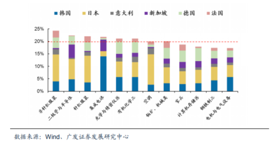 出口份额趋势性上升的行业,比较优势持续积累,订单具有更强的粘性,例如钢铁制品、机械器具、贱金属杂项制品、有机化学品、车辆及其零附件、变压器、蓄电池、电路电气控制装置、印刷电路、音响设备零件等。出口份额持续下降的行业,比较优势逐渐丧失。