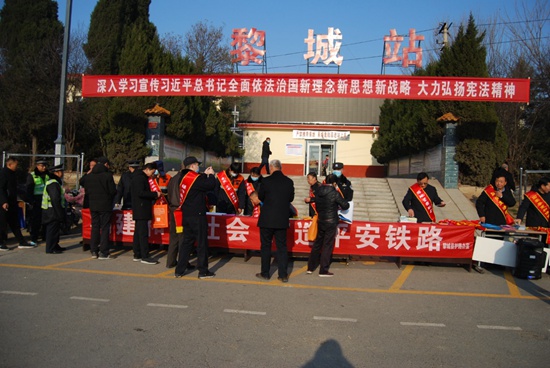 12月4日上午,黎城县护路办组织路地相关单位,在县火车站广场举行“12.4”铁路护路宣传活动。同时,铁路沿线乡镇和驻地铁路单位在辖区开展铁路护路宣传活动。