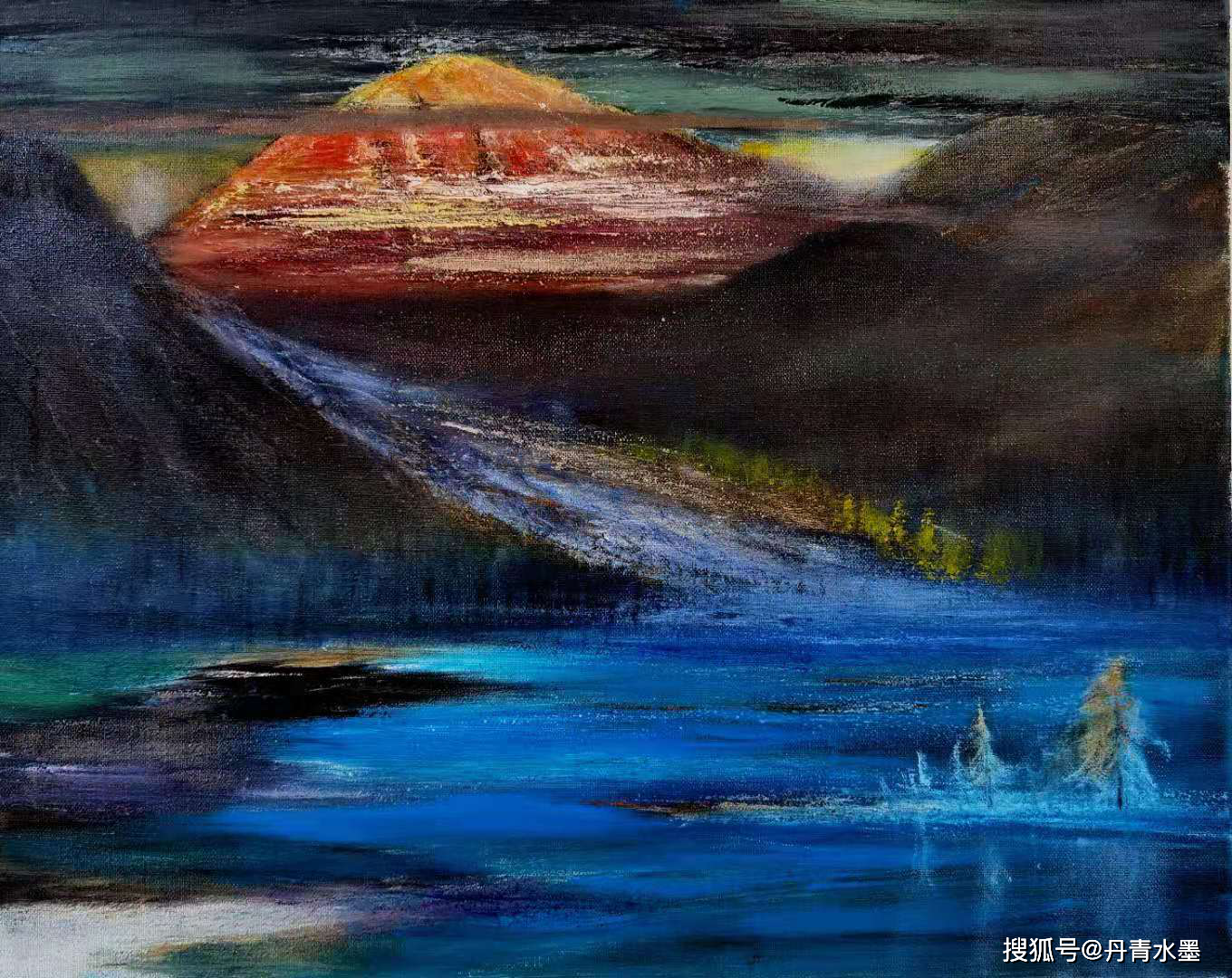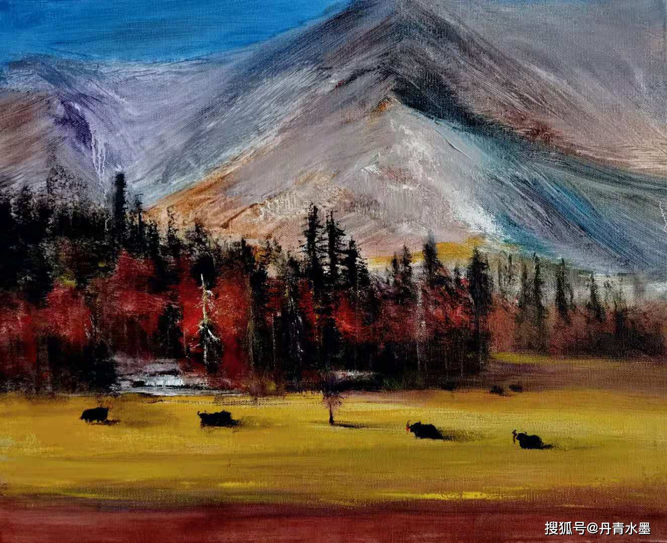 他磨砺油画专业,之所以取得了高段位的品质,与家学与画性皆有关系。法由师授很重要,教他作画的老师是其父亲。丁潮的父亲是徐悲鸿大师的学生丁忠瑛先生,经由这个画法脉络的主流传承,再加上画性超人,让丁潮先生的画法训练从一开始就构建起了严谨而严密的法度体系,所以他的油画无论从光影、结构、色彩、透视等层面都表现出非常精湛的塑造要义、应该说他把古典主义造型法度与印象主义的光影唯妙融合得相当到位!比如唐家河印象、红原晨曦这些作品,都是古典主义画法与印象主义画法的和谐塑造。这就是他的油画在圈里圈外尽有口碑的重要原因。 如果丁潮先生的油画,只有西式的法度表现,那么也不能建树起独树一帜的艺术造诣。他在通谙西式画法的前提下,又有主动把东方审美的意象融进油画的探索成绩。这个探索方向,与徐悲鸿的功绩有相同的文化融合价值,但是实现文化融合价值的方向是有区别的。徐悲鸿是在用油画的方式去影响中国画,丁潮是用中国画的方式去影响油画创作。丁潮对东方审美的“意象”概念很熟念,所以让油画里出现意象气韵就显得很自然。