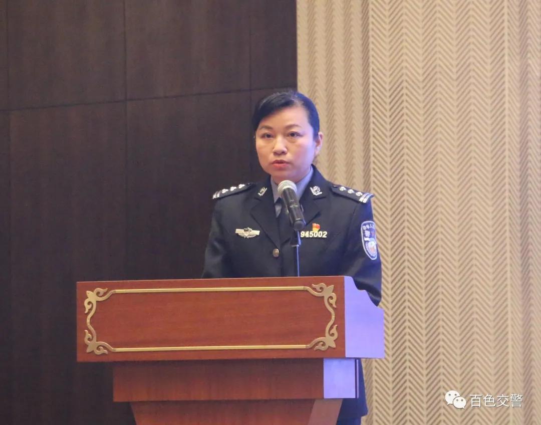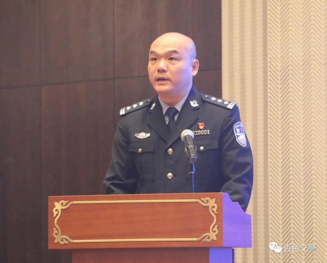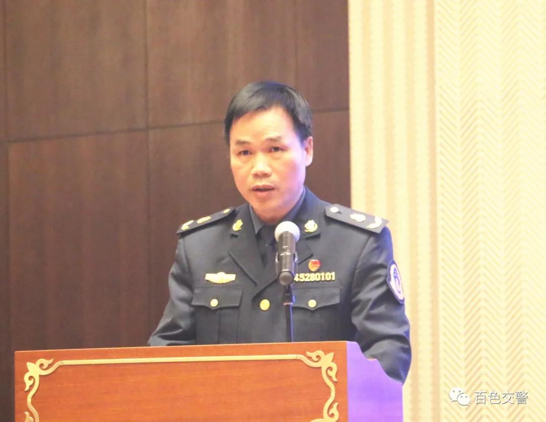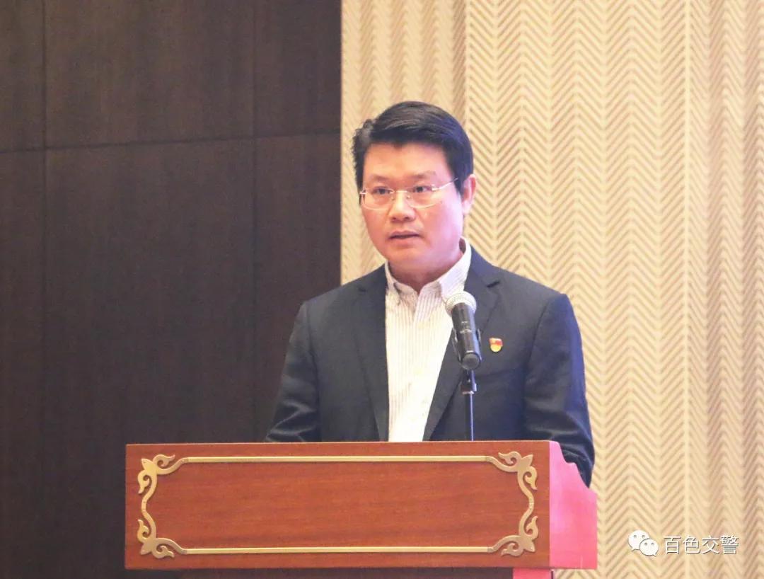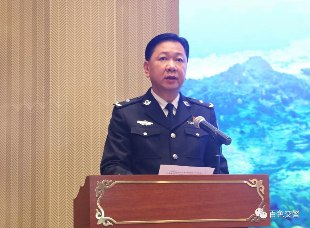 百色市公安局党委委员、副局长、交警支队支队长黄毅军介绍百色高速公路交通管理创新工作经验