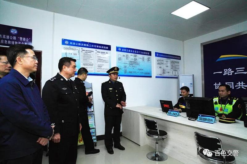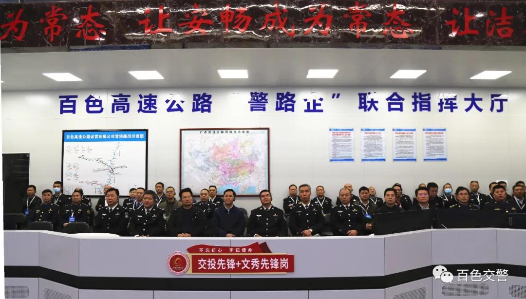 与会代表分两个车队分组观摩、参观了百色警路企综合服务中心、百色警路企党建红色联盟中心、百色高速公路警路企联合指挥中心、G80 广昆高速田东服务区执法服务站。