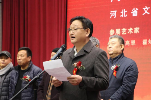 路皓在开幕式上讲话。他说,今天入展的四位画家,是当代河北中青年画家中的优秀代表。这次展出的作品,立意积极向上,格调高雅脱俗,具有浓郁的壮丽山河与美好生活气息,抒发了画家们的政治信仰和爱党爱国情怀。希望四位画家以今天的展览为起点,胸怀理想担当,努力争做时代风气的先觉者、先行者、先倡者,创作更多有筋骨、有道德、有温度的文艺作品,彰显生活之美、信仰之美。也希望全省的广大文艺工作者,能沉下身去、静下心来,精益求精搞创作,在作品中体现对祖国大好河山的热爱、对幸福美好生活的赞美,注入精神的力量,彰显艺术的价值,把最好的精神食粮奉献给广大人民。 他指出,省文联历来重视文艺人才培养和文艺队伍建设,在省委、省政府和省委宣传部的正确领导下,积极落实省委“四个一批”安排部署,大力实施“精选、精创、精推”工作法,通过举办展演展览、研讨交流、教育培训等方式,努力推出了一批文艺精品、培育了一批文艺名家。今后,省文联将一如既往地履行好自身职责,大力发掘推介文艺人才,为大家搭建更加宽广的展示平台,构建更加畅通的交流渠道,夯实高原,铸就高峰,推动我省文艺创作实现大发展、大繁荣,为新时代建设经济强省、美丽河北,为建成社会主义文化强国作出新的更大的贡献!