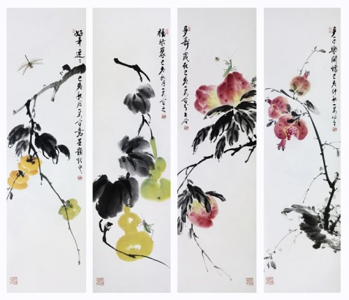 尹伟 蔬果草虫四条屏