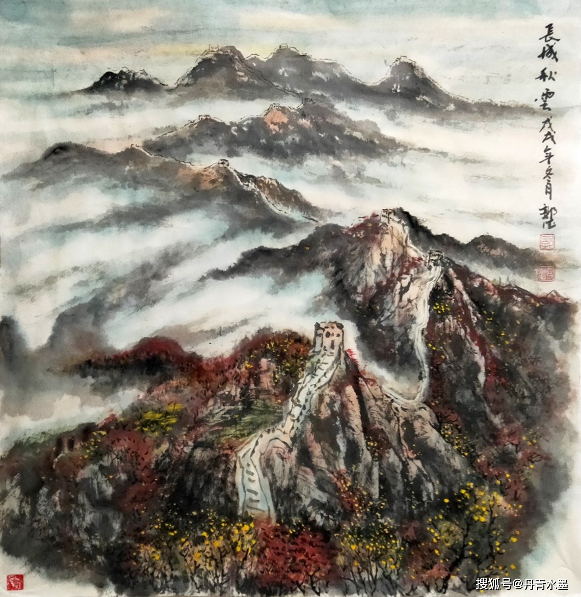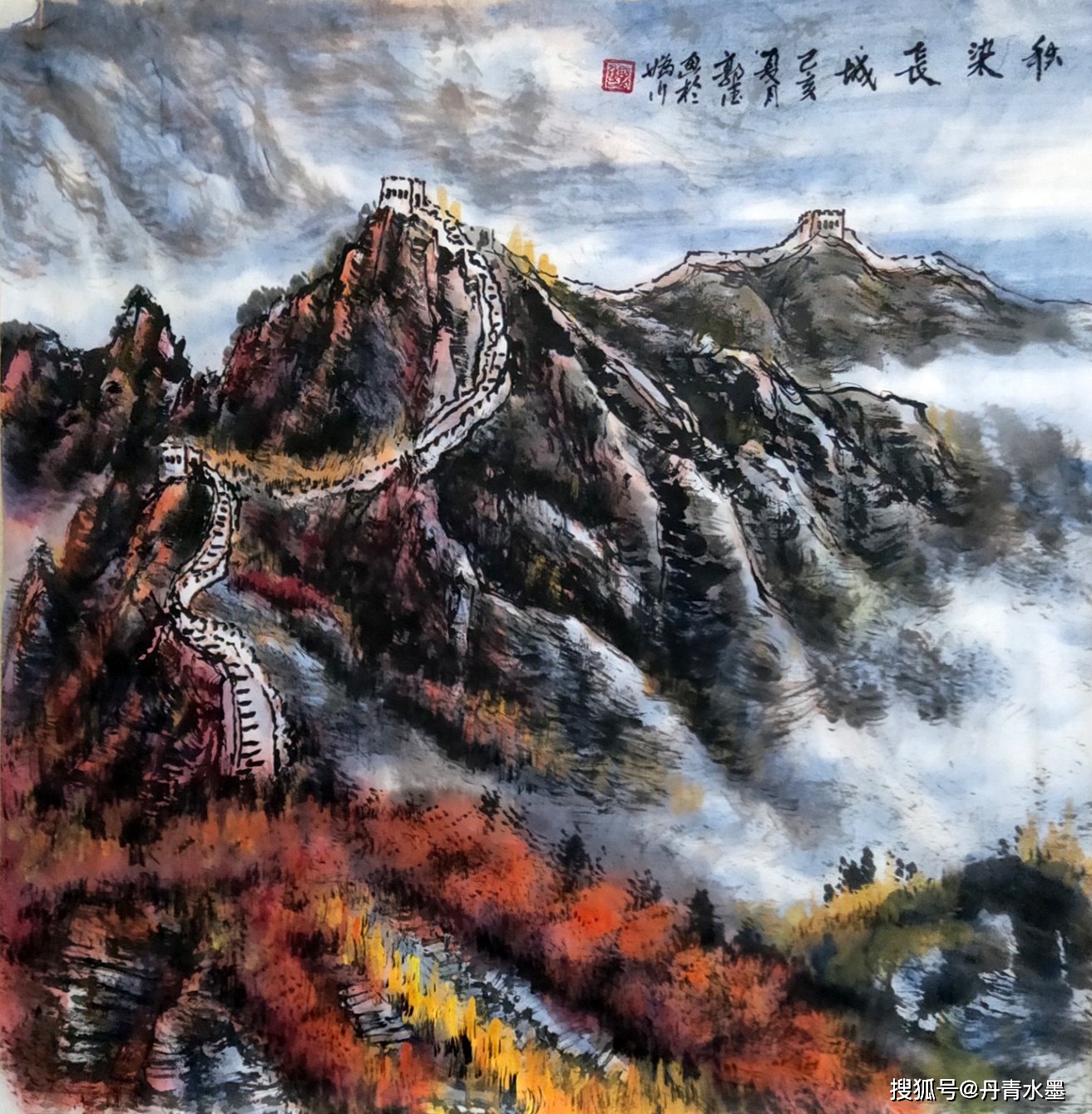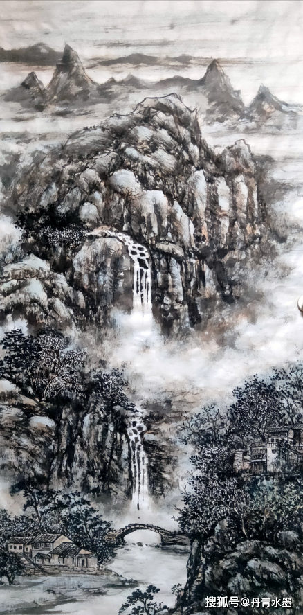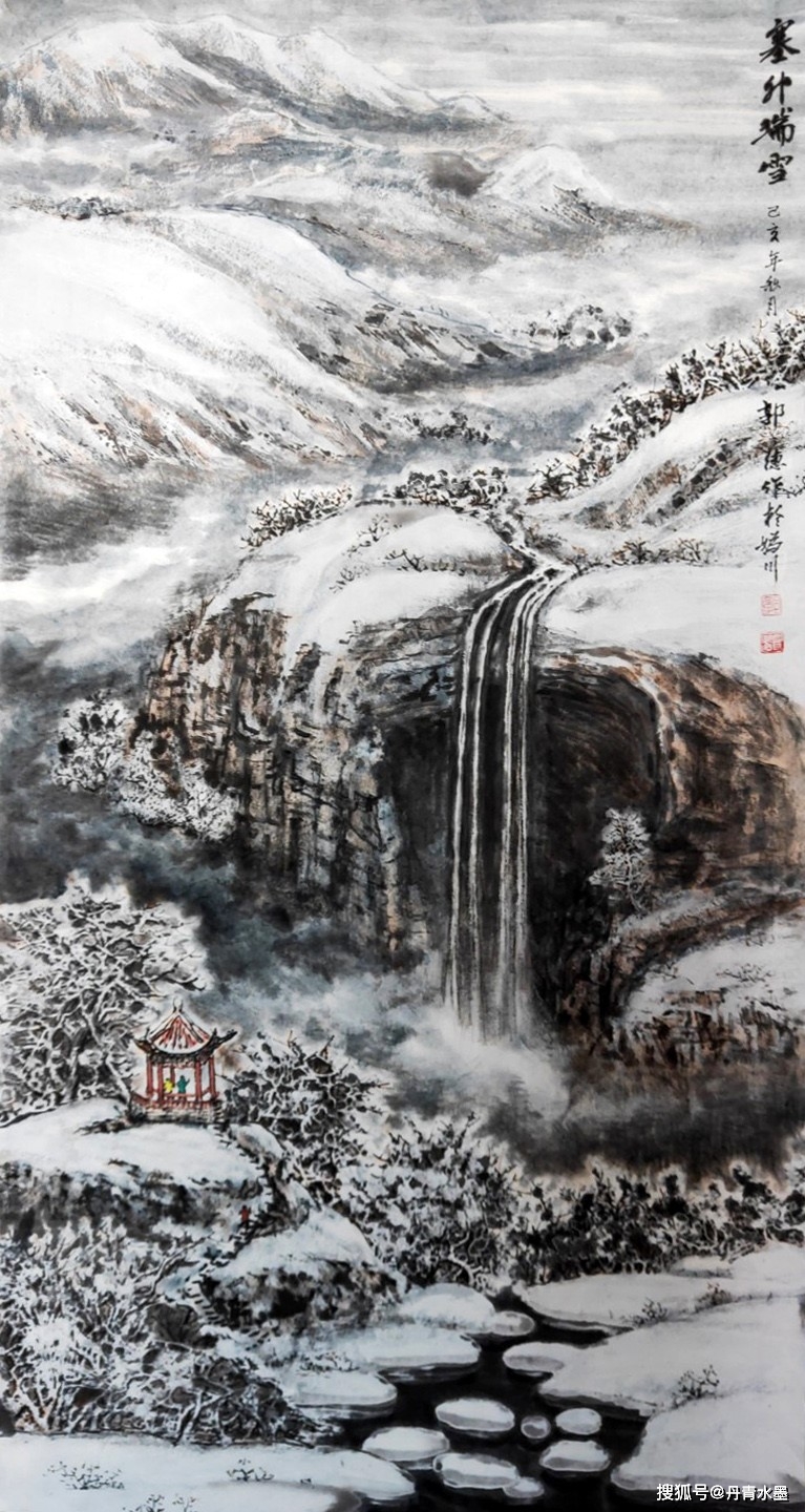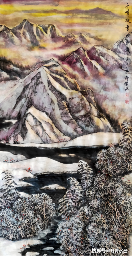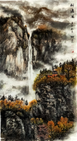 谢赫论山水,首论气韵生动。气韵不可言说,但是可以心觉。有气韵可知适情切意,赏心悦目。无气韵不可观,匠工!观赏郭德先生的山水作品,极见苍润的诗情画意,一天清淑气,万里碧榆风,气韵扑面盈心,生动到天质自然!写意云上山巅,风行雨霁,百尺悬瀑,寒林萧萧,都依水为道,以墨为器而作渲染,浓墨复沓,层次分明,水墨互破,氤氲妙见,能不生气韵? 又有重彩铺陈,艳而不俗,经由色益墨,墨映色的相互融合,把自然之山水写意得五色焕神,能不生气韵?所以,经过色不碍墨,墨不碍色的酝酿,让郭德先生的山水作品成为浑厚华滋的经典!仰观其画,东崖复沓蔽轻雾,西峰峥嵘喷流泉,云来山更妙,云山共高下!有极强的欣赏性,也可以装饰万家屏障,雅俗共赏!