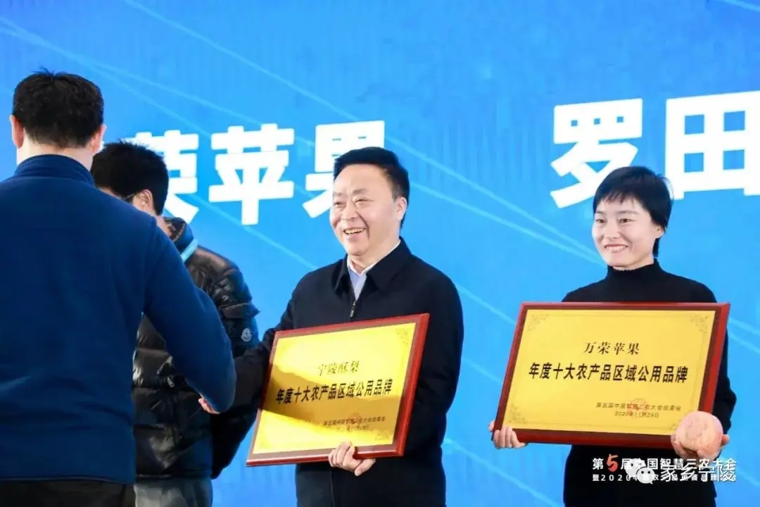 在第五届中国智慧三农大会暨2020中国农产品电商品牌峰会上,“宁陵酥梨”与都江堰猕猴桃、万荣苹果、罗田板栗、安化黑茶、丹棱桔橙、合川枇杷、东港草莓、新宁崀山脐橙、监利龙虾等一同获得全国年度十大农产品区域公用品牌殊荣。