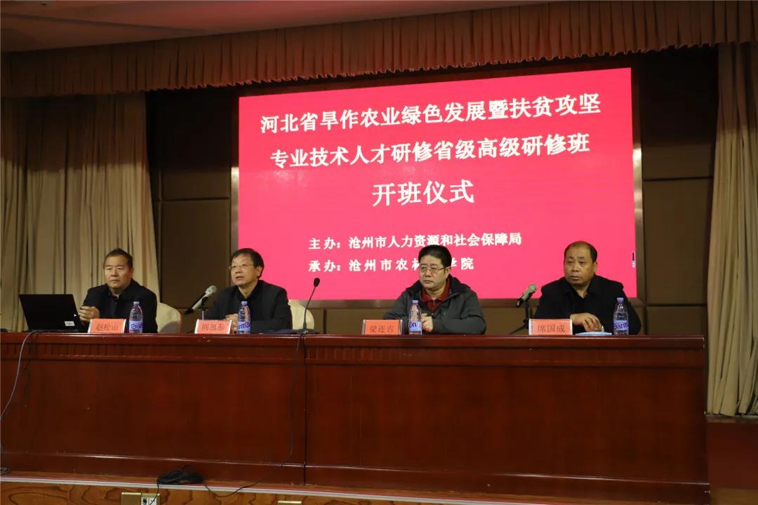 由沧州市人力资源和社会保障局主办,沧州市农林科学院承办的 “河北省旱作农业绿色发展暨扶贫攻坚专业技术人才研修省级高级研修班”于2020年12月1日—5日在沧州市阳光酒店成功举办。来自衡水、廊坊、沧州等地市共计90人参加了此次研修。沧州市人力资源和社会保障局专业技术人员管理科梁连吉副科长;沧州职业技术学院副院长、沧州市农林科学院副院长(法人)阎旭东研究员出席研修班开班仪式并致辞。