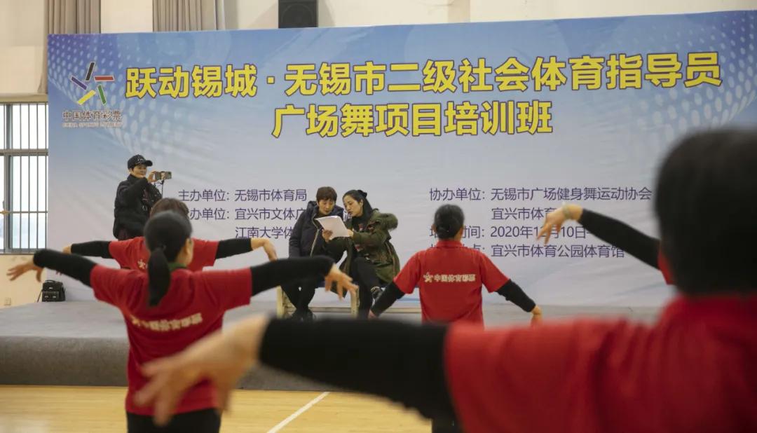 为加强社会体育指导员队伍建设,建立健全全民健身志愿服务长效机制,12月10至11日,无锡市二级社会体育指导员广场舞项目技能培训在宜兴体育公园体育馆开班。江南大学体育老师徐清香为全市100名一线社会体育指导员教授《不忘初心》广场舞套路。