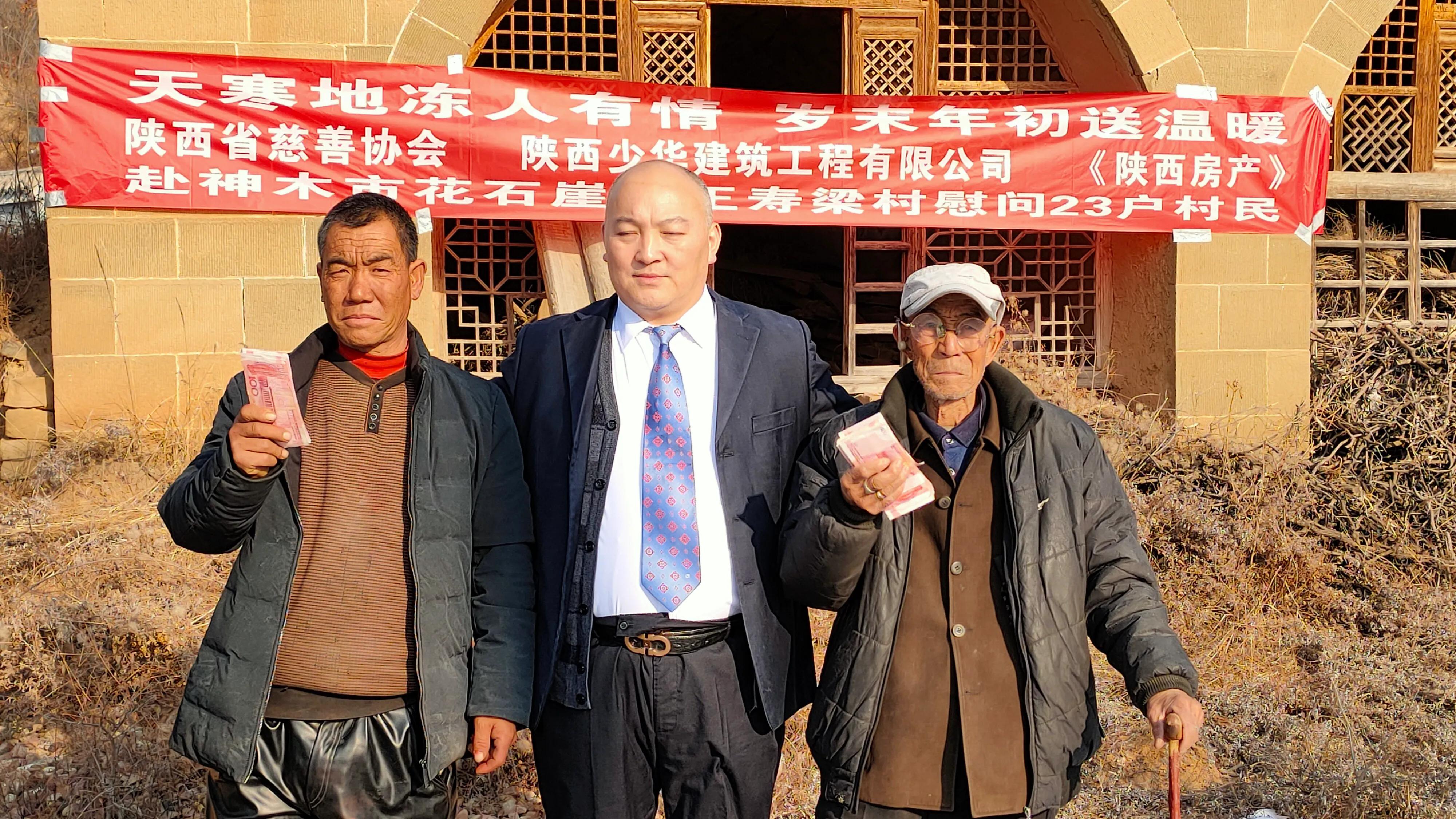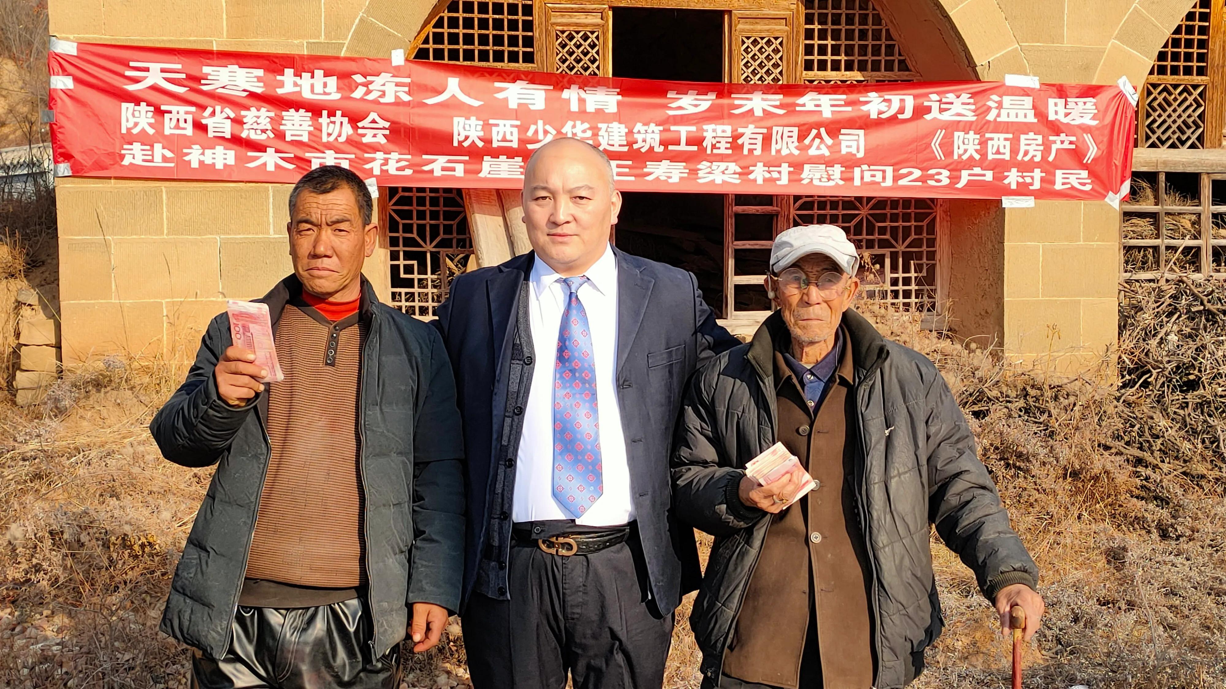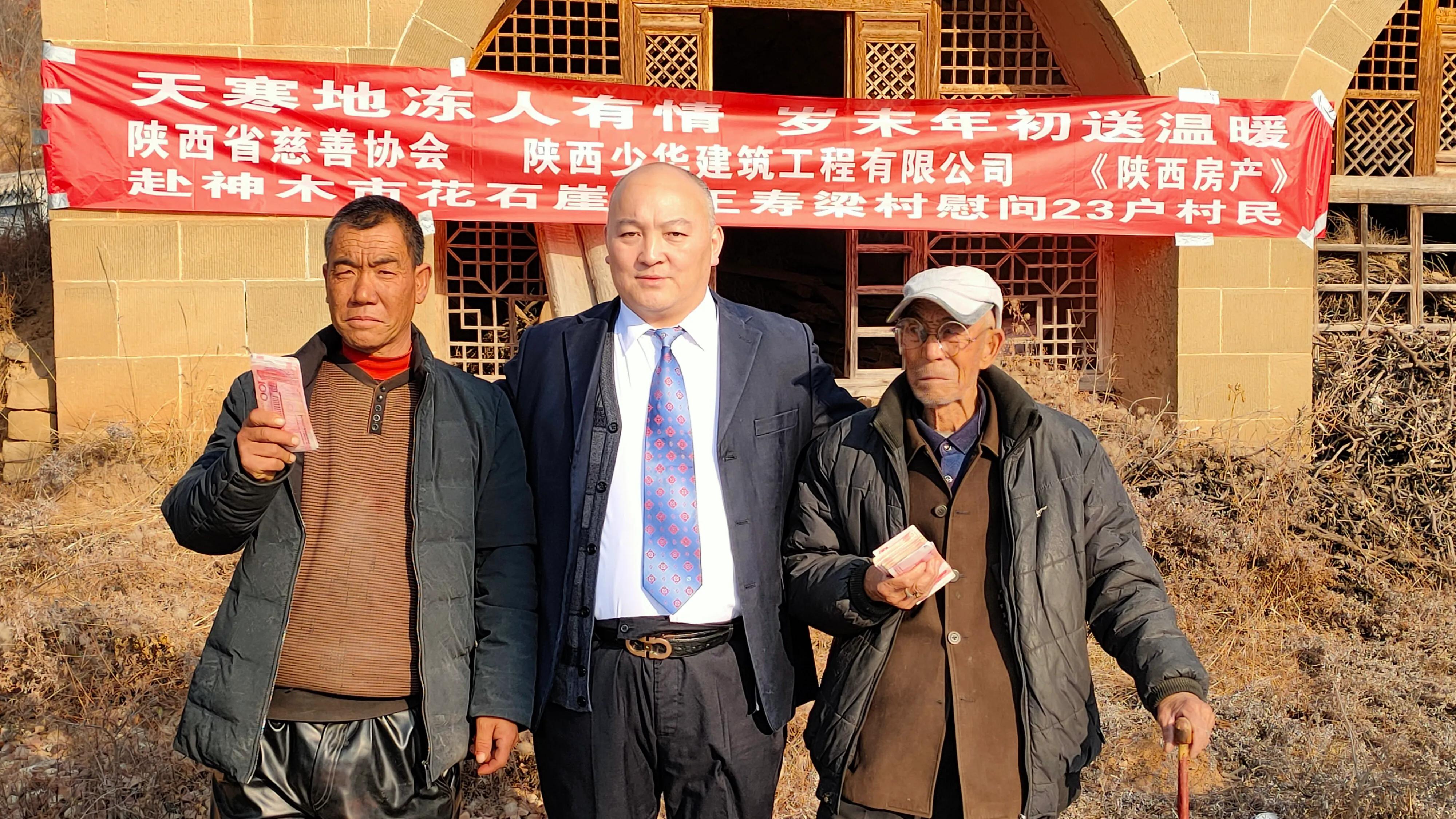 2020-12-12 18:49 政协委员高海军同志致富不忘众乡亲 访陕西少华建筑工程有限公司董事长高海军 2020年12月12日,陕西少华建筑工程有限公司董事长高海军先生和2020年12月12日 陕西慈善协会,少华集团,陕西房产张国政主编,国家一级歌唱家许春,爱心人士李芳琳女士,九三学社城南支社主委唐田太等人从西安出发,来回开车行程1200公里慰问因上半年干旱少雨的榆林市神木市花石崖镇王寿梁村、榆林靖边席麻湾镇东高峁村40多户贫困户以及,孤寡老人、九三学社陕西省委员会城南支社、陕西慈善协会,榆林慈善协会庞会长,神木慈善协会白会长等人的大力支持,感谢陕西房产张国政主编的摄影,少华集团共同组织慰问榆林市神木县花石崖镇王寿梁村、靖边东高峁村40多户70岁以上孤寡老人、贫困户以及留守儿童。每户捐赠现金1500元人民币,由陕西省慈善协会爱心大使、社会爱心人士以及土耳其华商会会长许春女士和李芳玲女士、原西安军分区司令员王余、中国双拥联合会常务副会长、(享受副部级待遇)全国爱国拥军模范、全国民族团结进步模范、全国学雷锋先进个人,全国省部级优秀共产党员、全国道德模范、全国先进家庭石志光因出席省上颁奖活动他老人家表示慰问。 陕西省政协委员、全国道德模范、爱心人士,榆林谢老大制衣有限公司董事长 谢海琴女士、表示慰问和支持, 陕西省政协委员、爱心人士 少华集团董事长 高海军 十三届陕西省人大常委会省人大代表:牛慧女士表示支持慰问 陕西房产杂志主编:张国郑 主编全程报道, 神木县花石崖乡王寿梁村,王寿梁村坐落在陕北黄土高坡的一座石头山上,高海军一行又沿着崎岖的山路行车20多公里来到神木县花石崖乡王寿梁村,看望村里的留守孤寡老人,给23户乡亲送来了慰问金合计53000元,给榆林靖边席麻湾镇东高峁村13户贫困户送来慰问金13000元人民币。合计66000元,据了解,王寿梁村原先总共有66户人家,因为道路不通畅,不是村村通硬化公路,而是土路和石头路,汽车一不小心就开到沟渠里或者山沟里了,一下大雨村里到乡镇府步行都很难出行,汽车也不能通行,步行就要2个小时的山路才能到达花石崖乡镇府,好多年轻人都外出打工,后来都不回老家了,现居住的仅有23户人家,平均年龄在65岁以上。村里主要的经济作物是玉米,马铃薯,稻谷、小米等,由于今年也就是2020年鼠年,陕北地区前半年干旱少雨产量不高,而玉米的收购价仅是每斤1元。每户每人年平均收入不足2000元,以前由于地下水位下降,村里水井的出水量越来越少,自来水不够用,村民20多天才能接一次自来水,由于水放的时间太长水质量都变了,村民只能去邻村的深山沟挑水,生活环境非常困难。今年前半年陕西省水利厅、神木县水利局、神木市政府终于给全村老百姓打了一口井,存储水量100立方米,村民称以后吃水就不用愁了。全体村民感谢党和国家的好政策。 高海军一行到了高家堡古镇,又走了近2小时的盘山公路,才到达王寿梁村。乡亲们知道这个好消息,早早的在村口等侯着这位不忘家乡的年轻人和各位领导。记者想采访一下高总,被高总婉言拒绝,他说:“这是我能给乡亲们做的一点小事,村里大都剩下一些老人,出行也不太方便,只是想让大家过一个好年,在年关来临之际。我还做的不好,也希望社会各界有能力的人能帮助这些生活困难的老人,让他们有更好的生存环境。更多的关心留守老人和儿童”。说完这些话,就帮着把现金递给乡亲们和大家伙拉着家常。中午高海军董事长请所有的爱心人士和孤寡老人和留守儿童吃了炖羊肉。 通过和村民的交谈得知,高总逢年过节总是惦记着乡亲们。从今年开始,高总代表陕西少华建筑工程有限公司会捐助无力支付学费的贫困学生5人。也会每年过年前回家乡看望乡亲们和留守老人还有儿童,并慰问乡亲们,乡亲们永远都记得高海军董事长对他们的好! 高海军和他的陕西少华建筑工程有限公司不一定是最大的,但无疑是成功的。热心公益、奉献爱心、回报社会,勇于担当,比那些富而不仁、麻木淡漠、唯利唯己、逃避责任的企业更让人尊重! “在巨富中死去是一种耻辱。”这是美国钢铁大王、慈善家卡耐基临死前的一句名言。只有更多的人觉醒,更多的人献出一片爱,世间才会变得更加美好!同时感谢更多的爱心人士和兄弟朋友以及少华集团下属公司负责人,感谢你们对贫困山区的帮助与支持以下是下属公司和项目部人员 2020年12月12日陕西少华建筑工程有限公司通过陕西省慈善协会、榆林市慈善协会共计捐款给陕北神府革命老区花石崖镇王寿梁村捐款51000元人民币,以及以及榆林靖边席麻湾镇东高峁村13建档贫困户13000元,共计捐款66000元人民币。请大家伸出爱心之手帮助神府革命老区老乡们度过困难 陕西少华建筑工程有限公司贵州天柱项目部项目经理吉方国捐款5000元人民币 陕西少华建筑工程有限公司山西晋城项目部项目经理冷西盘捐款5000元人民币 陕西少华建筑工程有限公司新疆独山子分公司经理杨军捐款1000元人民币 陕西少华建筑工程有限公司西藏分公司经理吴志明捐款1000元人民币 陕西少华建筑工程有限公司沈阳分公司经理刘芳平捐款10000元人民币 陕西少华建筑工程有限公司河南省舞阳分公司经理路常用捐款2000元人民币 陕西少华建筑工程有限公司山东省济宁市份公司经理徐国宝捐款1000元人