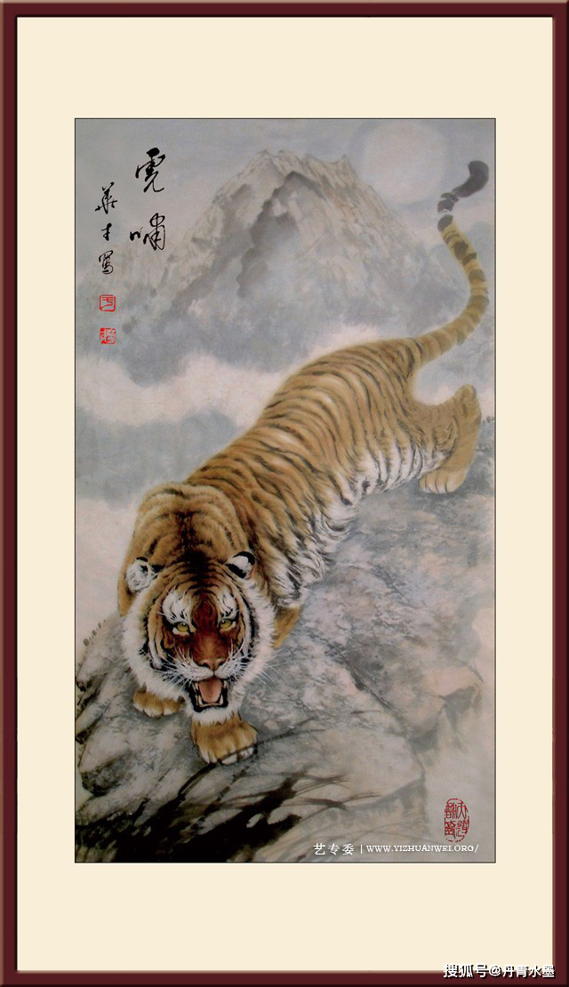 能工善写作华章 名达八方谓雄才 ——记著名画家于华才 观赏著名画家于华才的作品,必定会被他博涉多优的丹青才华所折服!一位画家,如若精通一门,便可以画史得功,于华才却用能工笔善写意的双重修养,把天地万类之象画得游刃有余!如若不是雄才,何有丹青赋盛世的这等大略! 工笔画虎,很能考验一位画家线描传神、渲染神威的能力!如若有一笔有弊,画虎不成反成猫。如果有点染有细弊,画虎不成反类犬!没有笔笔相生画精湛的功夫,画虎题作品,没有门径!于华才先生画老虎,极有两宋画法的院体法度,线描的功夫炉火纯青,笔笔相生,精益求精,不让一根线条成为散兵游勇,也不让一次点染出现浊蚀!所以他画的老虎因笔线利落而丰神,因色彩流丽而威严,上山喻王,下山寓势!有令人赏心悦目的观赏性,装饰屏障,雅俗共赏,在大众审美与专业品鉴层面都有极佳的口碑,得此一件,蓬荜生辉!