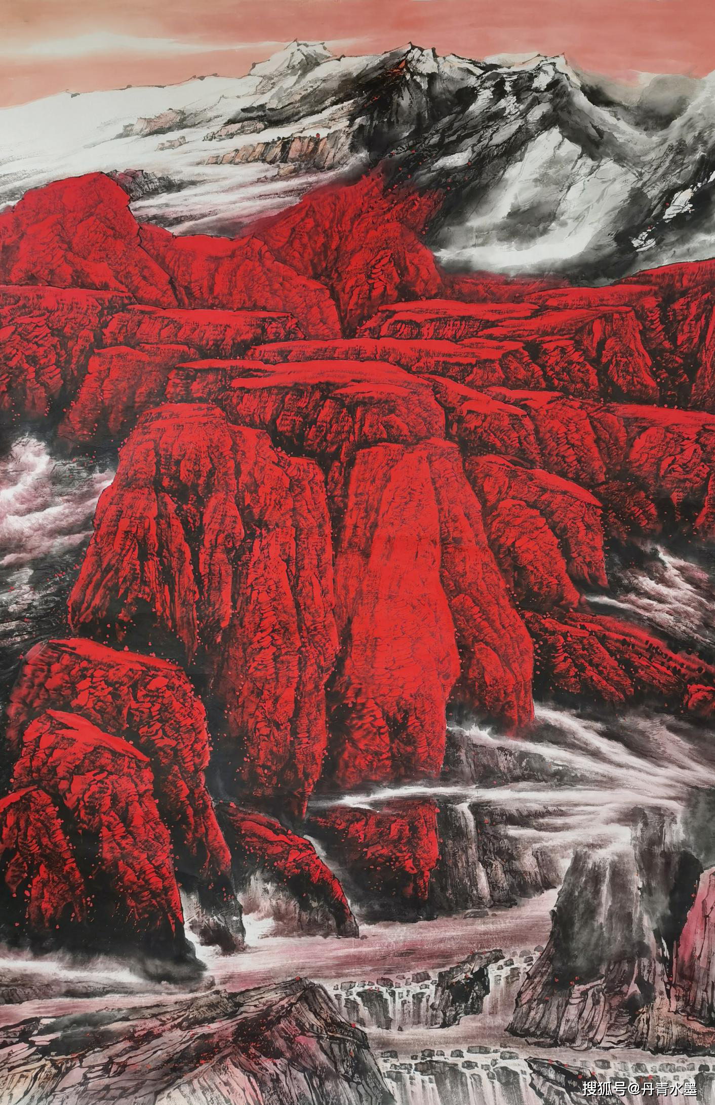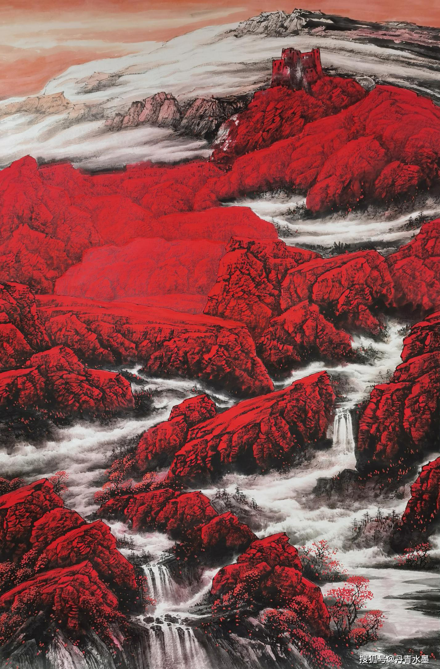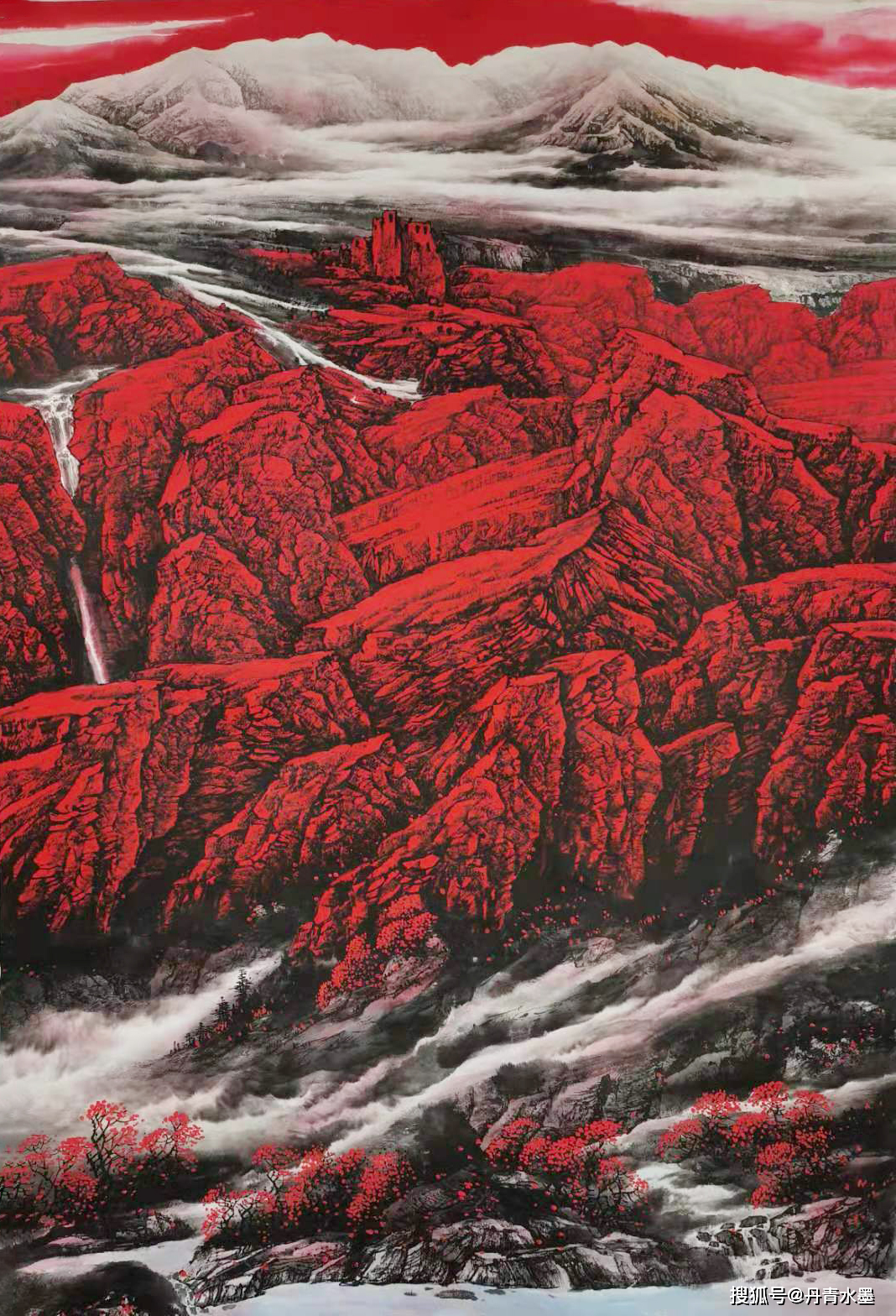 层林遍染霞红 磅礴激越豪情——记著名画家高劲松 中国画与油画在很长一段时间里有隔阂。主张中西绘画要拉开距离的人士居多。但是有一个很现实的问题是,作出中西画法融合的画家,常可以取得了非凡的成就。著名画家高劲松认为,从文化大融合的背景来看,让中国画法与油画法保持互不相融的意识并不现实,所以他的绘画实践也有中西画法相互融合的卓越实践 ,与同样持有此种实践的大贤一样,他的山水画也因为中西画法的融合,写意出了形神兼备的时代奇观! 从山水的创作形式来看,他的大绛山水作品与时代精神气质存在着鲜明的经络的联系,坚定走笔墨当随时代的道路!红墨”山水写意得正大气象,完具盛世品质,无论是在红的光泽感与红的气势感上绝然有不俗的精气神!高劲松的红墨山水不拘形式,极有气势淋漓的表现主义的新气象! 高劲松的红墨山水气象磅礴,在质感伟岸的同时,又倾向于诗意的表达,浪漫主义的格调扑面盈心!画风与别人并不雷同,非常认可“可贵者胆,所要者魂”“用最大的功力大进去,用最大的勇气打出来”的创作思维,所以因心转境,用红墨作铺陈,让古老的山水画艺术获得了可映时代精神的新的生命!