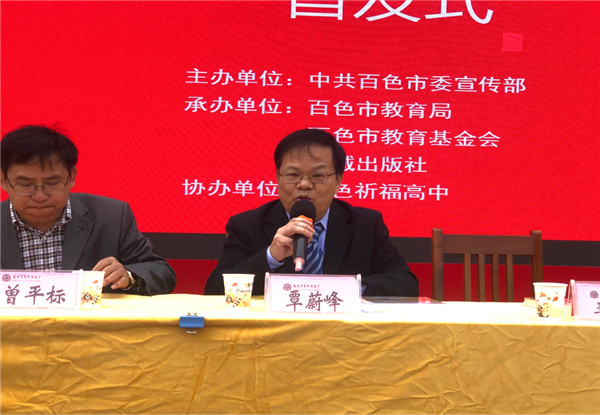 12月30日,由广东知名作家曾平标、廖琪撰写,花城出版的《扶贫状元陈开枝》首发仪式在百色举行。百色市教育基金会理事长梁文化,百色市教育基金会第一届理事会理事长石卫武,百色市人民政府副秘书长李正生, 百色市委宣传部副部长、市新闻出版局局长覃蔚峰,百色市人大副秘书长、办公室副主任黄文华,协作组处长莫丁汀等领导出席。百色市有关部委办局、学校,以及广东、广西主流媒体记者参加首发仪式。