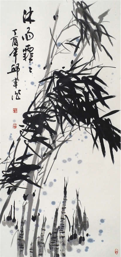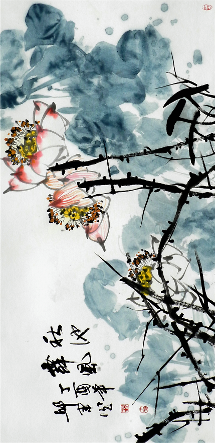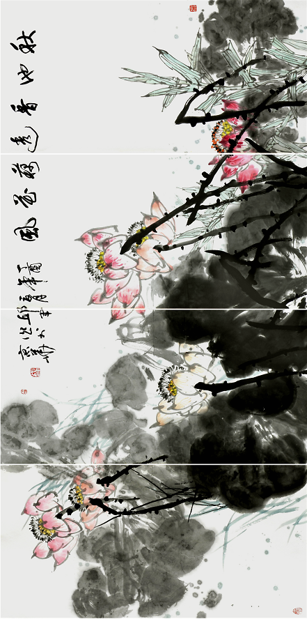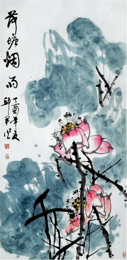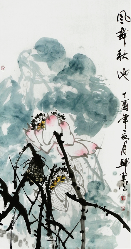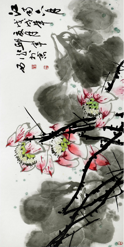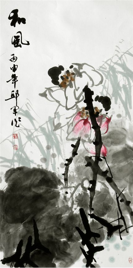 黄宾虹认为:“古人名作,重在笔力分优拙,不重外观之美,而重内部之充实而已”。因此,中国画重学养,重笔墨。画家的思想与情绪寄托于笔墨,笔墨体现学养,作品才更具艺术魅力。邱君长期坚持中国画创作及理论研究,并能从不同的艺术学科和古今大家经典作品中汲取滋养,博涉约取,锤炼笔墨。所以他的画作具有一种勃勃生机,清新而又典雅,在笔酣墨畅中且不失意趣,从中可感受到画家那天真浪漫的性格和灵动洒脱的情怀。抱朴含真游物外,笔含春雨润芙蓉。邱君用诗一般的情调叙述着对自然的认知、对人生的感悟,以荷之高洁的品格写就出他心中的情韵。 因此,他的作品被世人珍重。