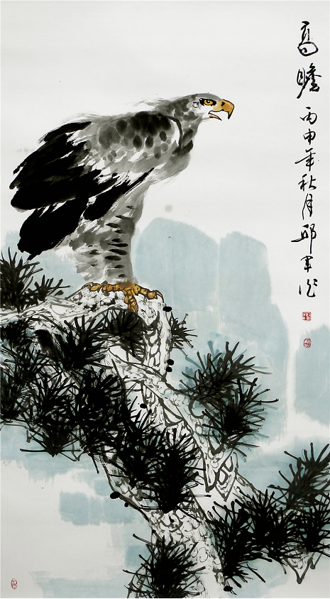 多年来,邱君结合自己的创作实践对笔墨进行了深入的探索和研究,并通过自己的创作来证实了中国画独具的东方哲学意味和水墨世界的无穷魅力。邱君在其绘画艺术中追求的并非形质的逼真,他更看重的是作品的气势、气韵和气质。他注重在万千变化的诗意生活中体悟造化之道,以艺术家的情怀去表现自然之美。从其作品看出,他巧妙地进入水墨写意之境,在画面中,画家的笔墨表现功能、传情功能、形式美功能,三者兼而有之,溶为一体。加之以书入画,固他的用笔疾徐得法,沉实苍劲,与章法布局结为一体,从而使其作品流露出奇崛清丽之风神。