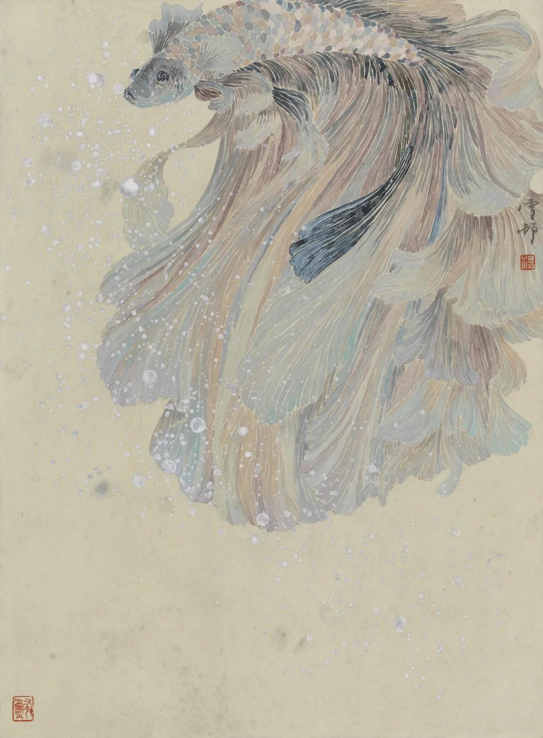 汤雪村《Betta》42×30.5cm 不念人间烦忧事, 自在坦然生活。 在玻璃鱼缸里游泳, 也能拥有乘风破浪的气魄。
