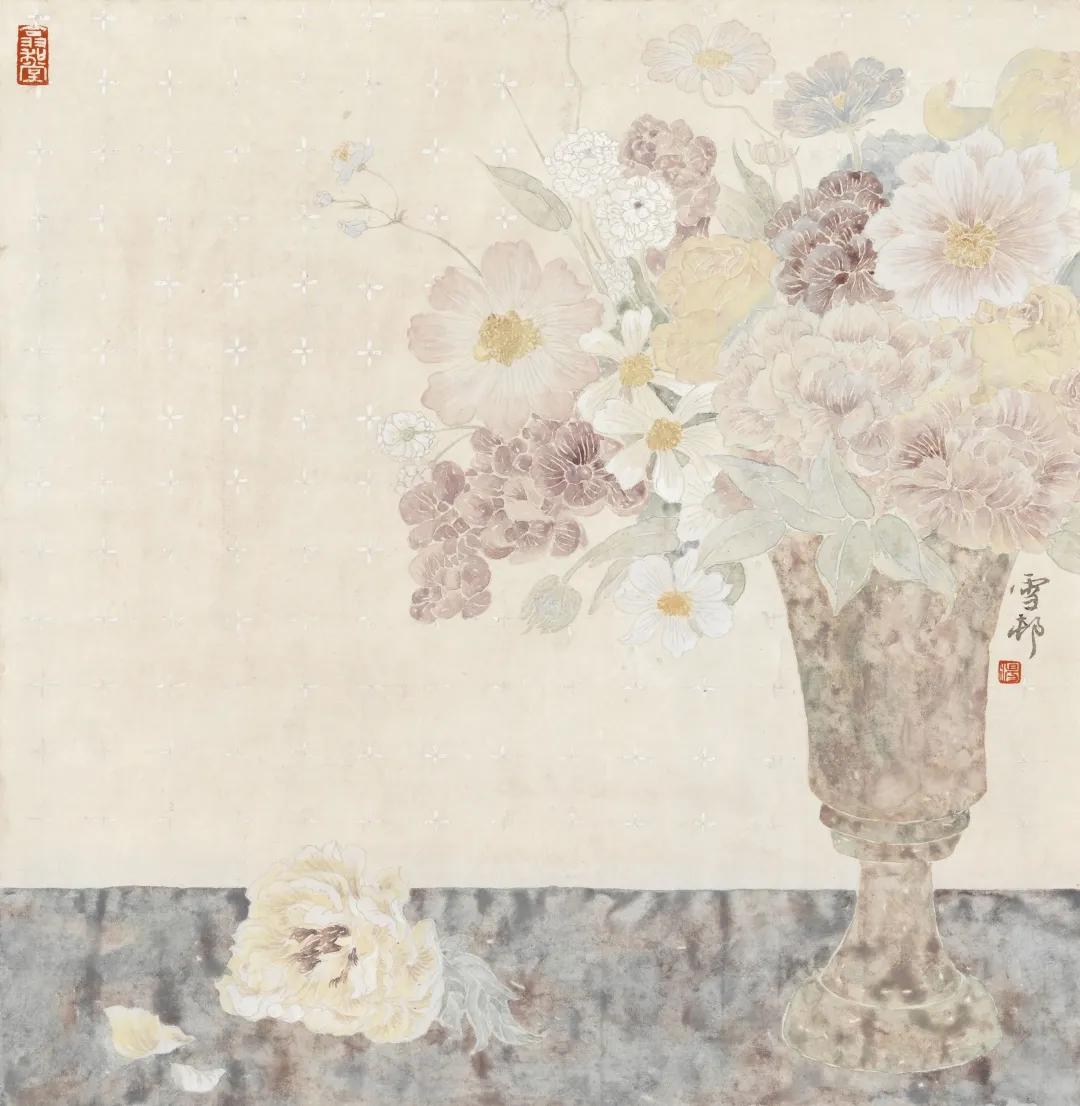 汤雪村《秋澄》33×33cm 坐看风起,不见风, 只遗一片幽香。 艺术家简介