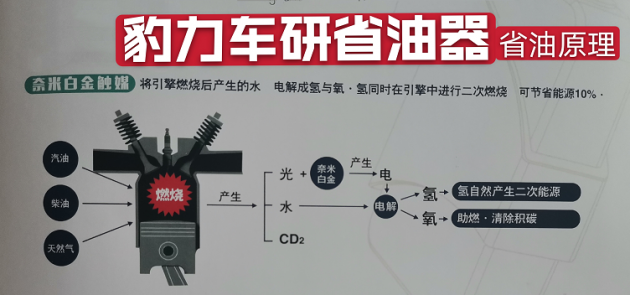2020年12月,豹力车研品牌发布会,同时宣布研发豹力车研2.0版概念产品。据技术人员介绍:豹力车研HHO氢氧自生能源助燃系统,采用法拉第电解原理,利用水电解产生氢氧气,从而给汽车内燃气加入新能源氢能,快速使碳氢燃料充分燃烧的氧气,将氢氧气输入到汽车进气口,与空气一起进入到引擎的气缸燃烧室中,与油气混合后产生二次燃烧。从科学的数据而言,氢的能量是同质量汽油的2.8倍,氢的点火能量仅为汽油的十分之一,但氢的燃点比汽油低,更容易点燃,其点火速度比汽油快5 倍,即氢的熄火间隙为0.06秒,仅为汽油0.18秒的三分之一,较少的熄火间隙可使火焰传布到汽缸的任意角落,因此,油气混合后加入氢,促使氢氧两种"助剂"的充分加入,更利于燃烧,节省能源消耗可达10-30%。