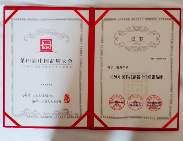 本届中国品牌大会上,浙江杉汇思诚环保科技有限公司品牌豹力车研荣获“2020中国科技创新十佳新锐品牌”,创始人俞春波荣获“2020中国科技创新品牌领军人物”。