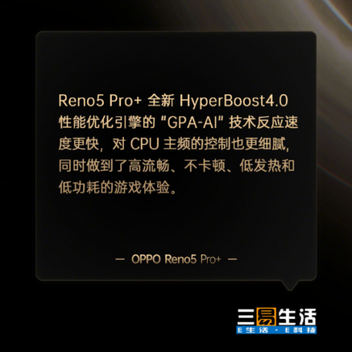 而性能表现方面,OPPO Reno5 Pro+也有着很好的表现,不仅配备了骁龙865处理器,同时也配备了最高12GB+256GB的存储组合,再加上HyperBoost4.0的系统级优化,速度飞快。而“易生活”、“雷科技”两家媒体也都纷纷表示,Reno5 Pro+有着绝佳的游戏体验,同时也明确的告诉消费者,有游戏、性能需求的Reno5 Pro+绝对是在考虑列表之中的。