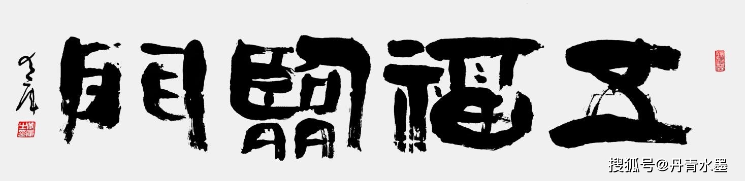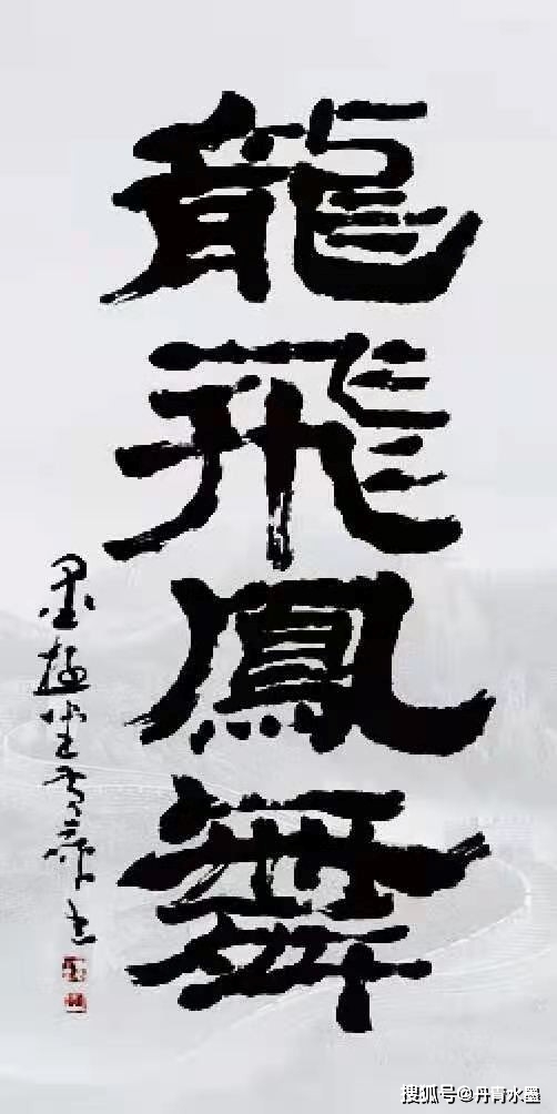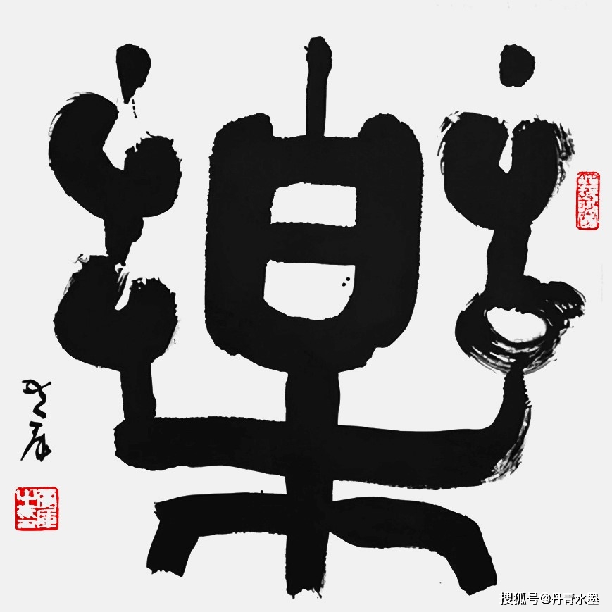 说到传承与经典,还可以赏看魏碑榜书《马》《十二生肖》功力之深,果然是大师手笔。魏碑之美路人皆知,但是写出古风原质实属不易。黄库魏碑端正华美,刀切锐利,力挽千钧,又要兼备诸体,以笔迹成刻迹,极能检验书法家的笔法能力。常人对魏碑,一般是绕过不修,以免功力不济,修而不得,反倒出丑。不练魏碑,书家品质就会缺少绝坚碑质,所以无论楷、行、草,都会先天不足。黄库对魏碑不但情有独钟,并且深修入境,《马》书成榜,笔能切岩,势能惊天,一字见真功。《十二生肖》魏碑之成,才致诸书有道。 综上所观,黄库书法是以高古为质,以传统为根的。正是因为深入高古,源出有根,所以作为书法理论家的黄库才高瞻远瞩,提出书法的百变理论,创造意书百变新形态,在继承的基础上开拓创新,引领书风走出一味师古且泥古的流弊,开创书坛涌新风的时代潮流,成为创派新宗。黄库创造百变书体的功成,说明这样一个问题:师古不是书法的建功立业,而是建功立业的基础,唯有在师古的基础上再创书坛奇迹,才是书者建功立业的重要标志。黄库之所以著称大师,与柳公权、颜真卿、启功等人同样,是因为皆有创新功。 理解了黄库的对书法经典的崇敬和传承,便会更加敬仰黄库书法的百变之创。下面,我们一起来仰赏黄库书法的百变之美—— 观赏《墨趣》一幅,可知百变书法要义根本。黄库书法根本理论是“阴阳审美逻辑”在书法创作中的落地实践。 阴阳即是太极,也是和谐。墨与白融,方与圆和,逸与沉映,长与短顾。百变书法,就是取天地运行机制的简朴要义,写道机于笔墨,悟天地成书法,通过墨色与笔画的太极变形,以简变成万变,万变有趣,直趋人心中天然存在的“和谐为中意”的审美潜意识。