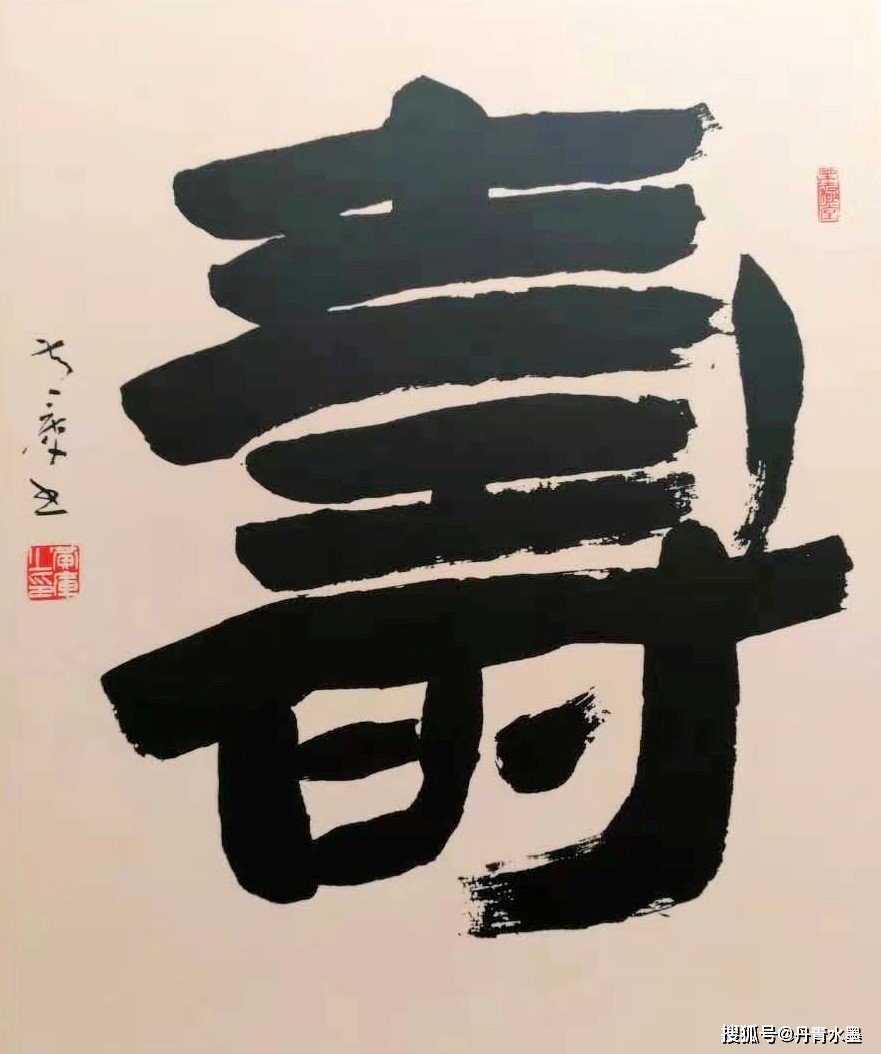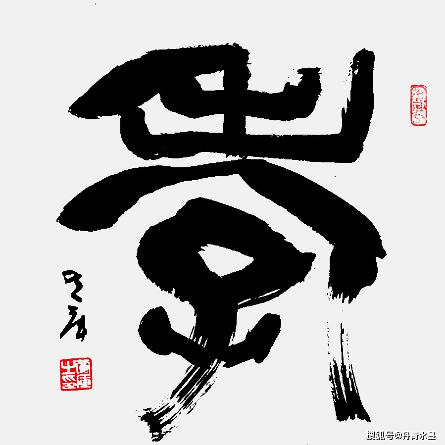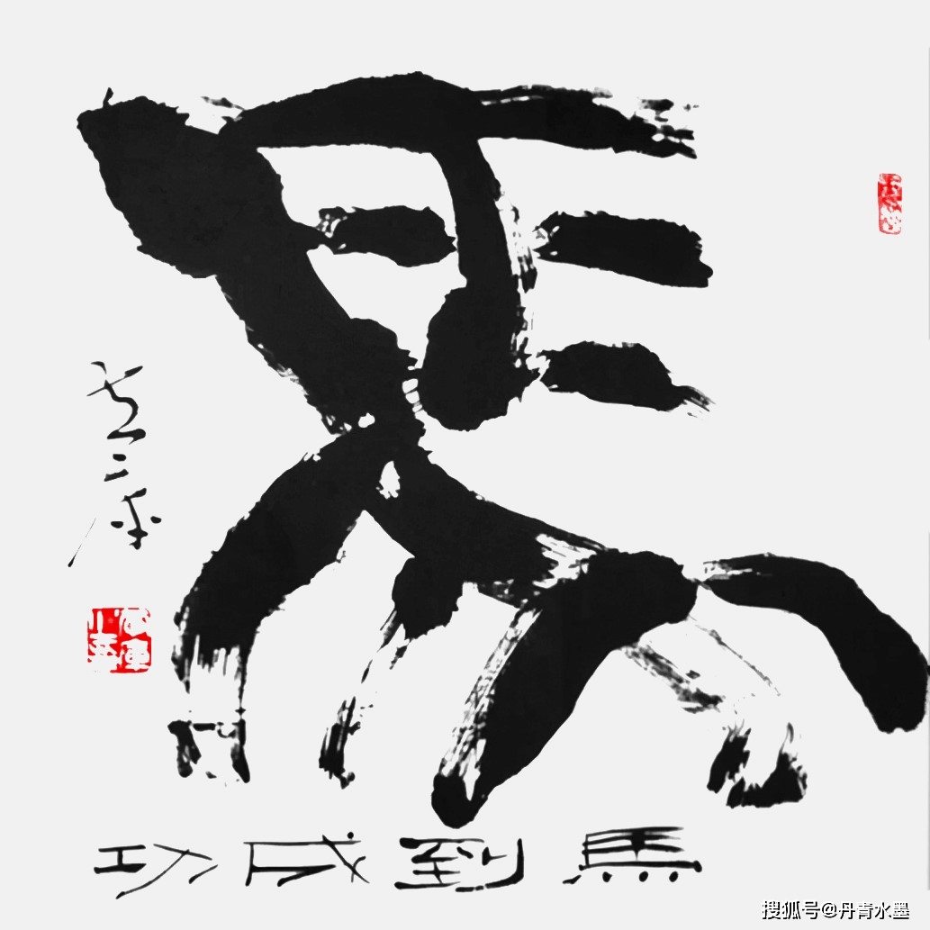 你看“墨”字,右边笔画趋圆,以收为形,左边笔画示方,以开为势。再看起笔为仰天姿态,收笔为落地情怀,笔势顾应回环,百变包裹其中,酝酿宇宙天象,机趣深刻,示形为简,太极之意,阴阳之寓。 再看“趣”字,左书为直瘦,右书为雍容,主仆相随,有情有景,和谐悦目。墨色上为天,却反取沉厚,下为地,却取飘逸,天地能转,意境能换,辨与证的思索,悄然入笔墨。读懂黄库书法百变玄机或许是困难的,因为禅意道机未必是常人所思。但是看懂黄库书法的百变美姿也并不易,因为只要我们用“对称”“非对称”这两个最基本的“自然道”视角去观赏百变书法,就会突然发悟:变是永恒,和是追求,人生即如此。 所以黄库的百变书法能很容易切中我们的人生积淀,能很好与我们的人生感念融为一体,成为通心启智的贴心抚慰。读黄库的百变书法,就是回望的人生,亦能从中期望到未来。书法线条的百变之美寓意人生之境,神机之变,立涌可现。所以,无论是看《福》《寿》《马》《义》《龙》《虎》《家》看到的不止于字态奇异美观,还有人生百变的无尽感叹,从这一点上来论,黄库的百变书法就是书法艺术的升级版本,以智慧为胜!