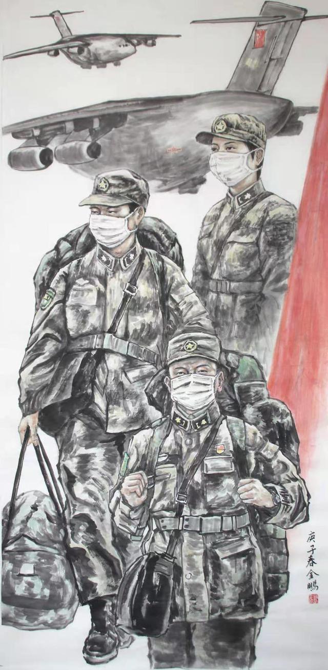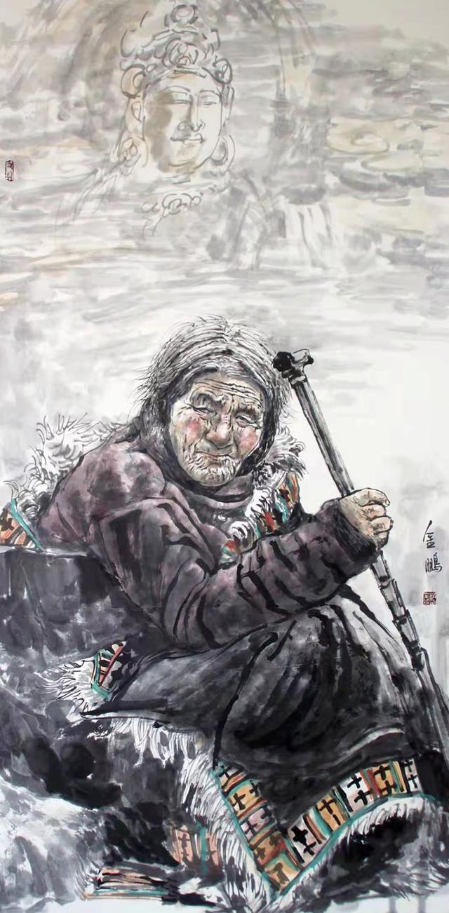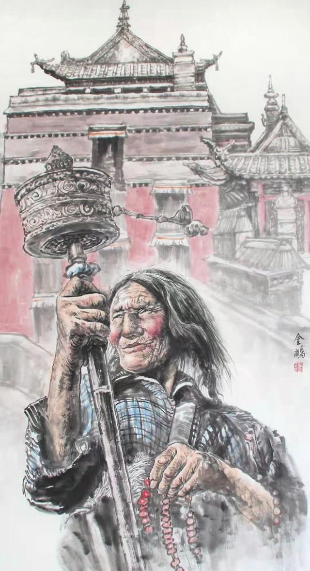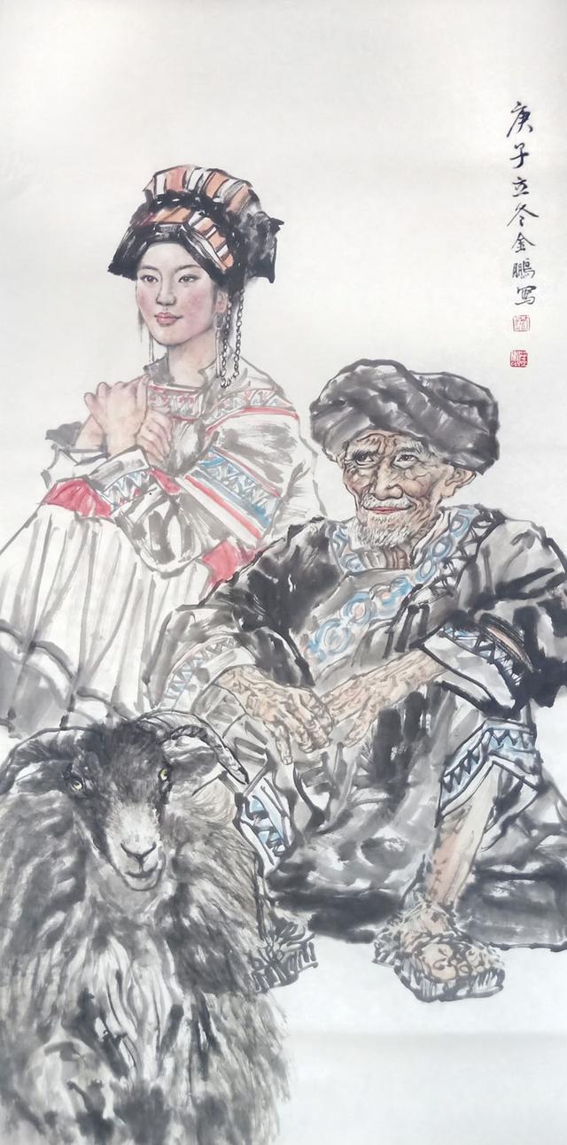 他切身体验生活,以此成就了其生动的人物画形象。赵金鹏有很强的造型能力,能驾轻就熟、整体地把握创作对象,强调创作对象最鲜明的外貌和内在的性格特征。他笔下的人物坚实饱满的造型、生动的表情,洋溢着生活的情趣,这正是画家本人的一种审美取向,因此其生动感人的画风得到当今人们的青睐。他崇尚自然游历各大山川采风写生,遍访名家、交流同道,不断体悟自然之美以及得到了诸名家真传,对中国传统文化不断学习、研究、涉猎,使他的艺术得以升华,水平更加精进。作为年轻的画家,赵金鹏一步步走得很坚实,这样的坚实与执着步入的必然是更高的艺术境界。