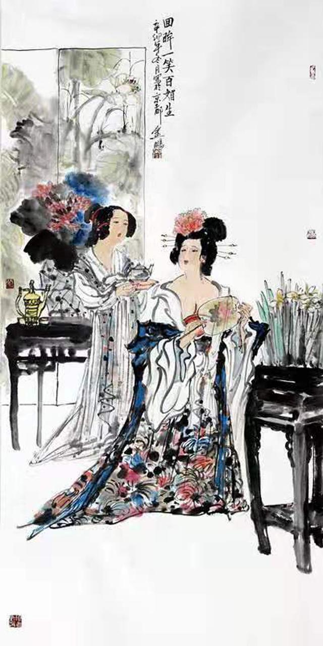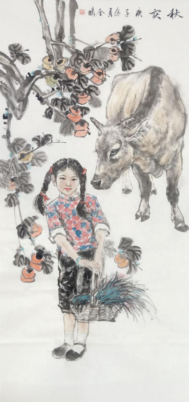 赵金鹏不仅精于大的创作,他的小品画依然耐人寻味。他醉心于八大、徐渭,任伯年及前世诸大家。他笔下的传统人物作品,形象逼真,笔墨精妙,清新自然,人与景和谐统一,气韵契合,使画中流淌着具象的真、抽象的美,倾诉着清灵旷远的诗意、人生的至美,营造出来一种和谐的天趣、幽雅的诗境,阐述的是返璞归真,是对真善美的追求、人文道义的关怀,让人在轻松愉悦静观中体味到一种久违的高古气息,获得一种美好的审美体验。