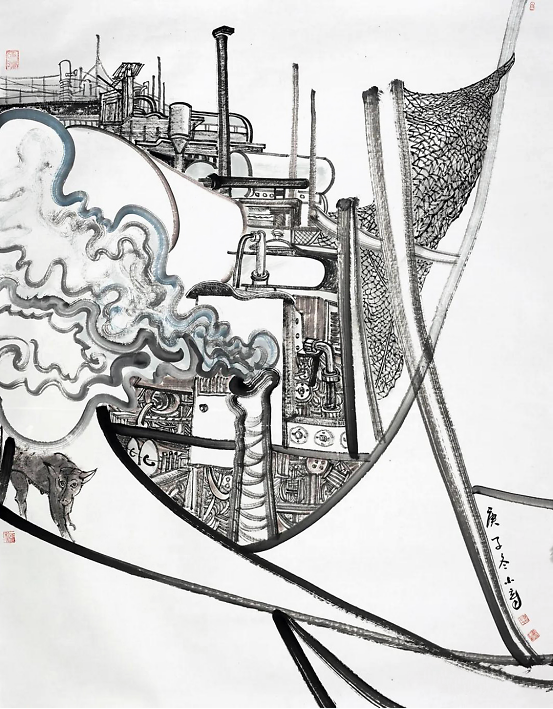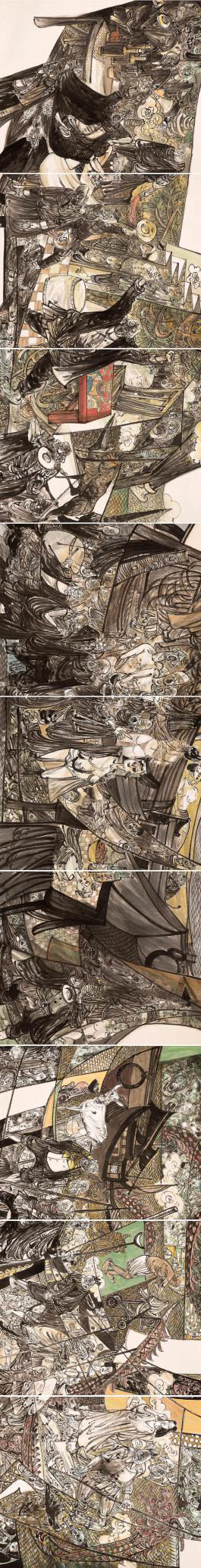 年轻的时候,做过不少长绳缚日的美梦。 然而,岁⽉总会在你“思接千载,视通万里”的时候,纷至沓来各种措手不及。 没有闲情去感叹,飞霜的两鬓和叠皱额头里,到底藏匿了多少与时代共枯荣的万劫不复。 我只是画画。 只想让光阴从指缝溜过的时候,留下一些胡思乱想的痕迹。 譬如,《坠入梦境的河流》。 譬如,《珠颈斑鸠和她的百乐园》。 就象顽童拾得一块尖石头,在驳落的门墙上,狠狠地或者漫不经心地,划下一些无聊的印记。 陈小奇 2021年1月6日 作品欣赏