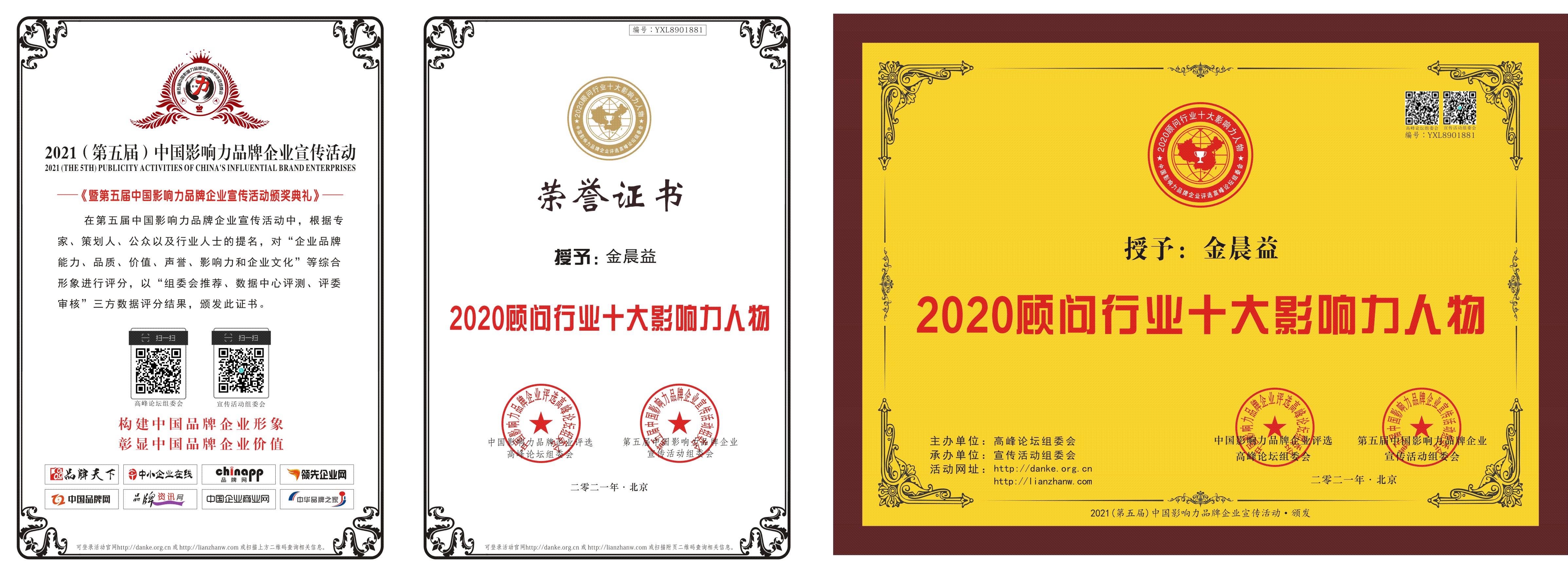 ½ð³¿ÒæÏÈÉúÔÚ×Éѯ¹ËÎÊÐÐÒµÓµÓм«¸ßµÄÖªÃû¶ÈºÍÓ°ÏìÁ¦£¬ÔںܶàÖдóÐÍ·¢Õ¹ÆóÒµÖе£Èγ¤ÆÚÕ½ÂÔ¹ËÎÊ£¬¸öÈËÁ¬ÐøÈýÄ꣨2018—2020£©»ñµÃÓɵÚÈý½ì¡¢µÚËĽ졢µÚÎå½ìÖйúÓ°ÏìÁ¦Æ·ÅÆÆóÒµÐû´«»î¶¯×éί»á¡¢ÖйúÓ°ÏìÁ¦Æ·ÅÆÆóÒµÆÀÑ¡¸ß·åÂÛ̳×éί»á°ä·¢µÄ¡¶×ÉѯÐÐÒµÓÅÐã¸öÈË¡·¡¢¡¶2020¹ËÎÊÐÐҵʮ´óÓ°ÏìÁ¦ÈËÎï¡·¡¢¡¶ÎÄ»¯´«Ã½ÐÐҵʮ´ó¾¼ÃÈËÎï¡·ÈÙÓþÖ¤Êé¡£