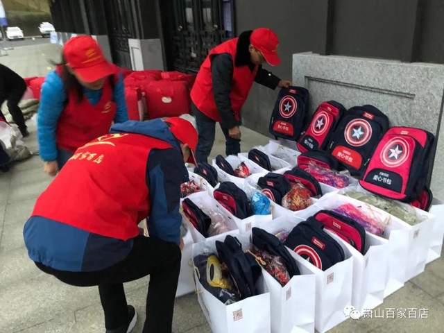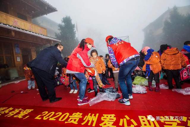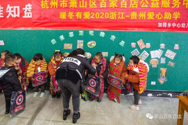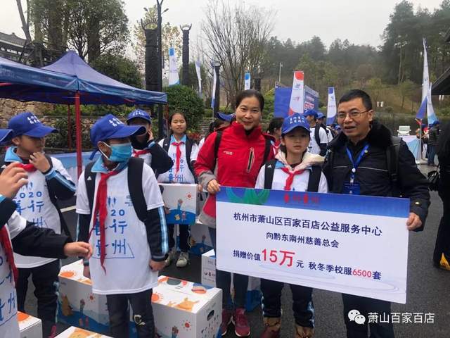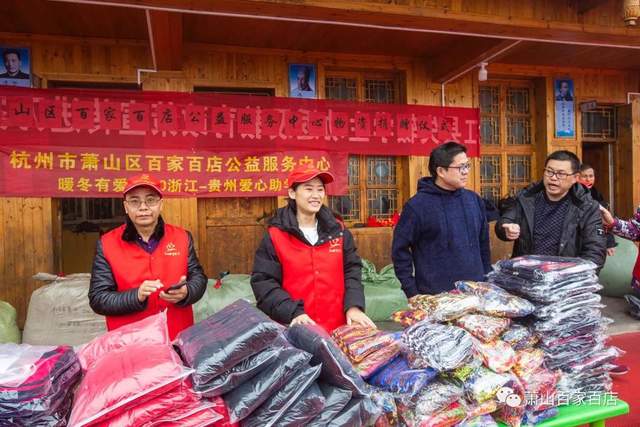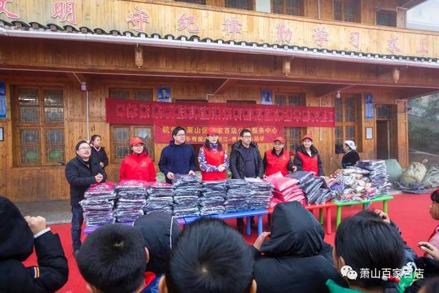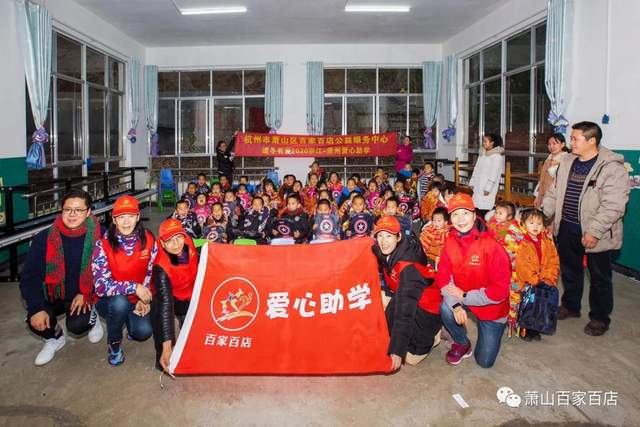 杭州市萧山区百家百店公益服务中心用心关爱乡村孩子,用爱送达我们爱心。 ![]() 善行贵州,为爱同行,杭州市萧山区百家百店公益服务中心暖冬有爱,2020贵州爱心助学行“百家百店”捐赠6500件价值约15万元的服装、书包等物资给黔东南州丹寨县、从江县的困难群众。活动受到杭州市萧山区文明办、萧山区民政局、萧山区志愿者指导中心等多方支持。百家百店理事长,总队部委派理事,副总队长高小平带领项勤、彭良佳、赵燕妮、陈老师等爱心志愿者一起受邀参加活动。此次活动圆满结束,凯旋归来。 ![]() 11月23日,常年戴着“贵州省深度贫困县”帽子的从江县正式脱贫摘帽。得缝喜讯之际的当天也是从千里之外的杭州市萧山区百家百店公益服务中心的浙江—贵州助学第一天,本次助学助困活动,是杭州市萧山区百家百店公益服务中心今年的第二次外省助学活动,10月刚刚结束甘肃暖冬助学活动,也是百家百店副总队长高小平对接并参与的第八次外省助学活动。11月23日至11月27日在贵洲当地开展。