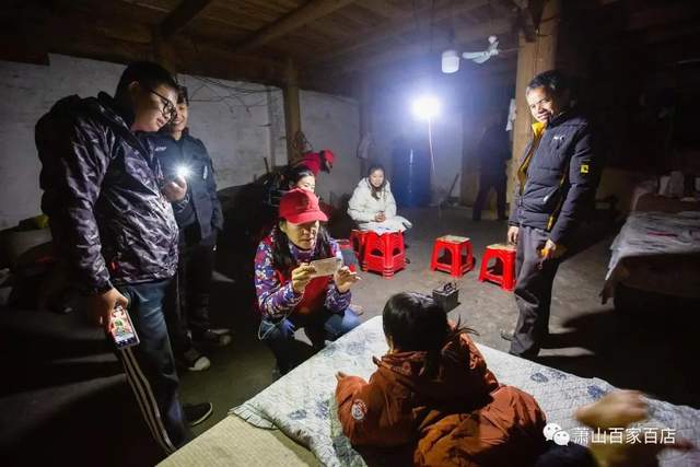 走完五所学校已经差不多五点半了,在同行的教育局领导和学校老师的情况说明下,得知很多孩子家境贫困,受百家百店理事,总队部全权委托带队的高小平就请学校整理了10多份名单,前行的志愿者亲自走到孩子的家中去调研情况。因为下雨山上泥泞车子根本到不了家门口,天黑没有路灯大家一起手拉手,用手机的电筒光照前行到孩子家中。