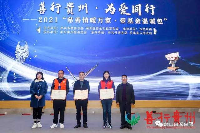 24日志愿者参加了贵州慈善总会的善行贵州,为爱同行2021壹基金温暖包,爱心捐赠启动仪式,代表百家百店理事,总队部受邀的高小平项勤等志愿者参加了此次大型活动,并上台爱心羽绒衣、爱心书包等物资捐赠发放,百家百店公益捐赠15万元物资的举牌捐赠仪式。