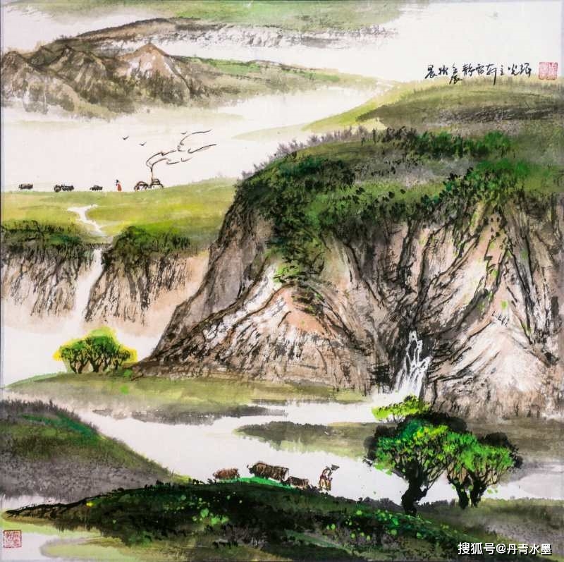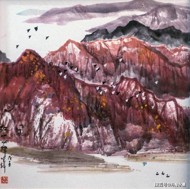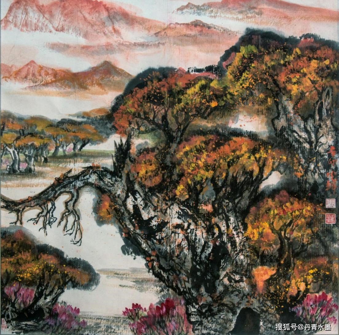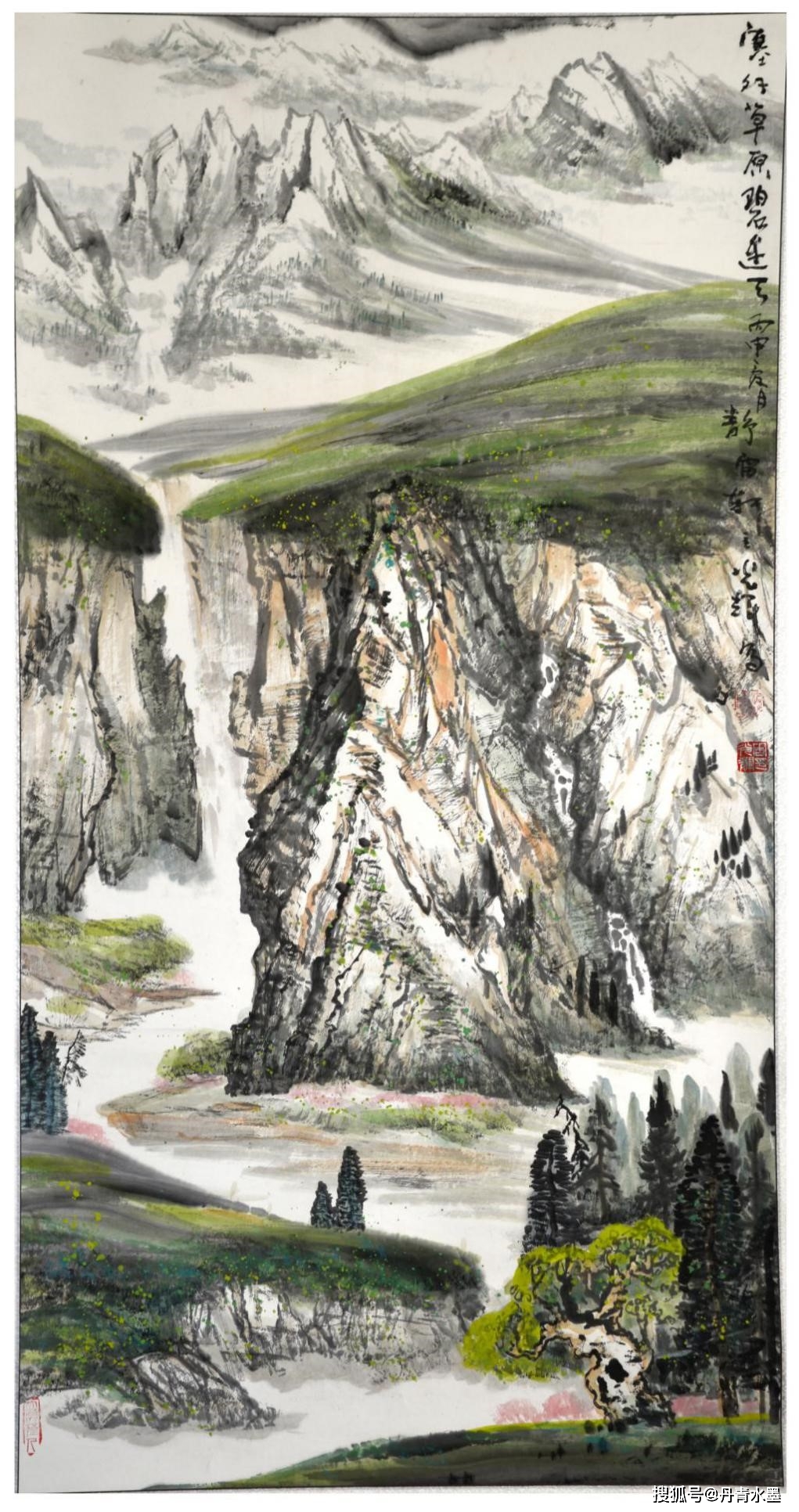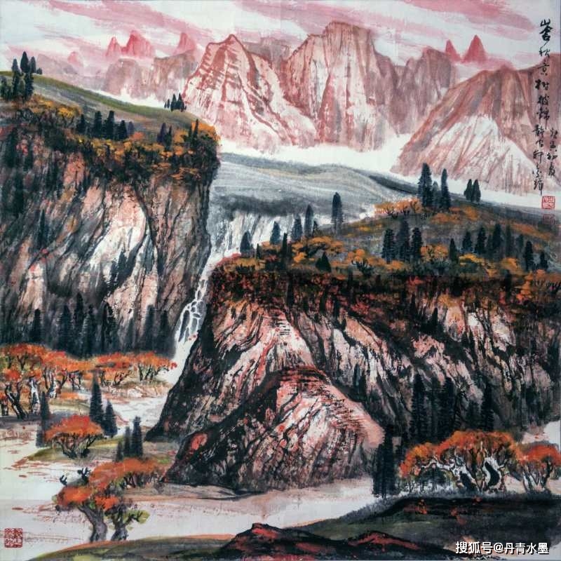 抛开了色彩,几乎无法表现深秋十月金灿灿的胡杨。盛夏百花盛开的牧场,那晨曦中金光闪闪的雪峰、晚霞笼罩下的山峦、还有那些赤红的峡谷、青紫色的群峰……。 如果你只用"分五色"的墨来表现,那简直是不可思议的事。哪怕你再有本事把墨分成十色、百色,你也无法给观众表达你眼前令人震撼,令人陶醉的绚丽斑斓的色彩感受。于是色彩便成了西部山水画一种特殊,而且是必须的语言形式。我们必须摆脱重墨轻色的传统审美情趣的束缚。重新建立起属于新疆的山水画理论体系,建立适合新疆的审美标准。不能用吃海鲜的标准来品评我们的烤羊肉。 如何不失传统中国画的特色,又能有机地将色彩融入中国传统绘画的形式语言中,便成了我长期思考和探索的问题。为了更准确生动的表现眼前的一切,于是我便把色当成墨,有时也把墨当成色,用传统的毛笔在宣纸上作画的方法创造性的任意挥洒皴擦、点染,以求较准确的表现对眼前景物的感受。在写生中不知不觉的创造出一套适合表现新疆景物特征的技法。使之既不失传统的中国画之笔墨精魂,又能较精确、生动、神形兼备的表现眼前的一切,这大概就是"外师造化,中得心愿"吧。 墨和色不是对立的,墨即是色,色即是墨。两者相辅相成,实现墨色互补,才能准确生动的表现新疆山川特征。新疆将是中国山水画开拓的新领域,色彩必定是中国画技法突破的最大空间。