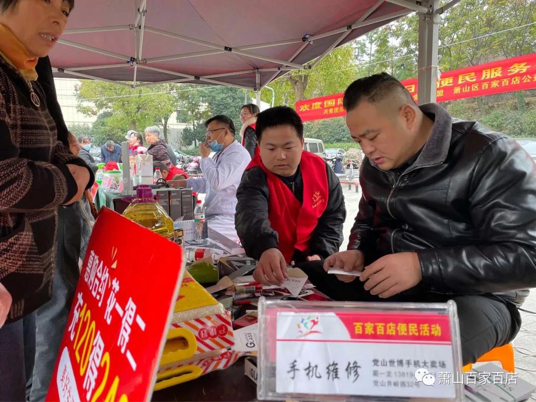 上午8点,“百家百店”志愿者们准时开摊,给瓜沥镇党山片区老百姓带去便民服务项目有:免费理发、磨剪刀菜刀、缝补衣物、修理家电、清洗厨房灶具、盲人推拿、测量血压、健康咨询、手机贴膜、防诈宣传等贴近百姓日常生活的便民服务。
