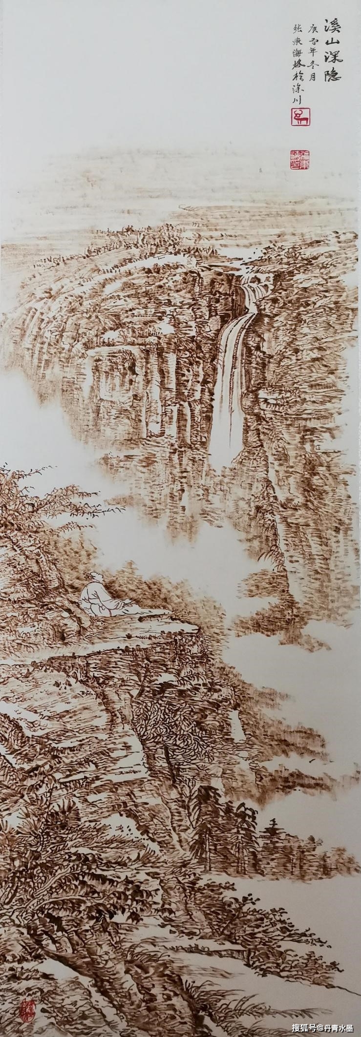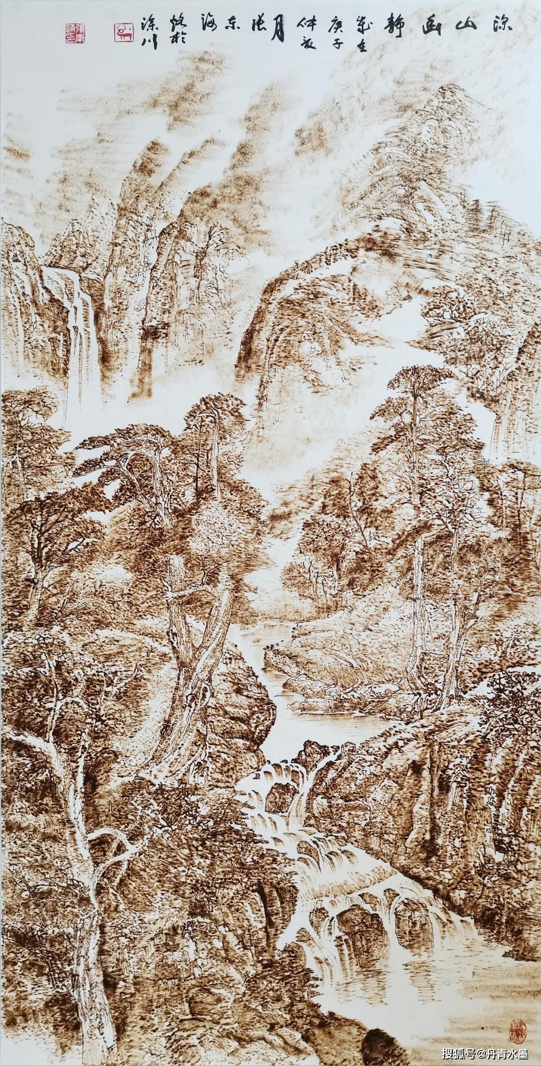 书画同修铸造诣,气韵生动法正宗。他的画在水气的缭绕下,显发出虚实相应气脉存在,山水尚古,却不仿古,有现代元素的构入,所以脱离匠气,直达丰神。在这个红尘滚滚的时代里,他用笔墨的清凉构造了可以安住人心的桃源世界。外师造化中得心源,不但山水气韵生动,花鸟也是传神之功,浓墨重彩画品梅,一枝独立,目面独有,馨香不畏寒凉,精神自有卓立!还可以执铁烙游走宣纸、木板、帛锦,用掌握精致的火候作烙画的神品,火针刺绣的功力,正是文化遗产的绝能!唯有大国工匠,才可以像他这样依匠而济神,走上书画艺术的峰巅,一览众山,畅神文化! 著名书画评论家 史峰 2019年12月31日