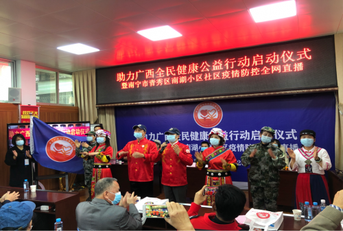 1月20日上午,由广西数十家社团、企事业单位和媒体发起的“助力广西全民健康公益行动”启动仪式暨南宁南湖社区疫情防控全网直播活动在南宁南湖社区隆重举行。自治区有关老领导,南宁青秀区津头街道办、南湖社区、医疗健康行业社团领导,医疗专家教授、社区居民代表、社区企业家代表、公益志愿者和部分新闻记者、现在直播人员参加了本次活动。