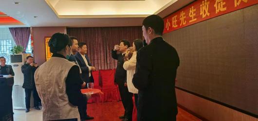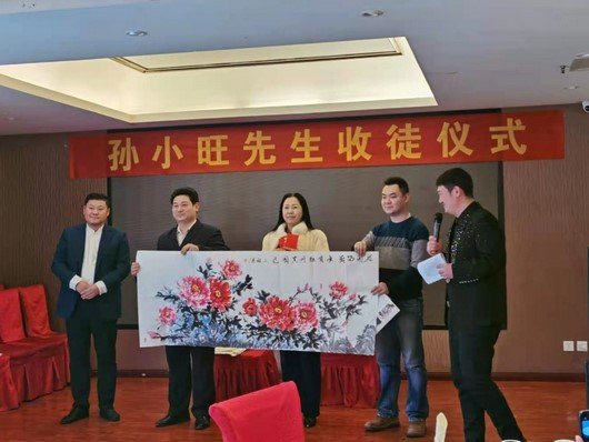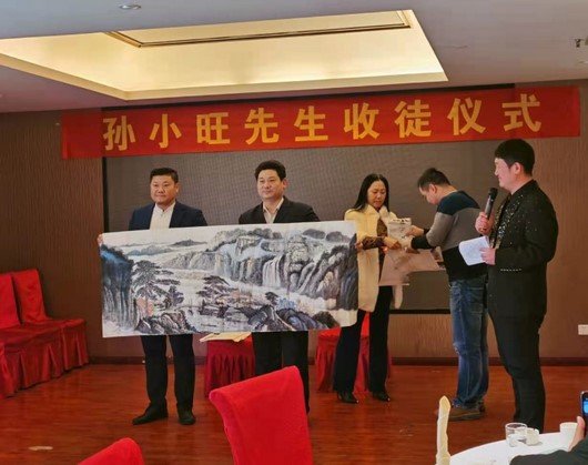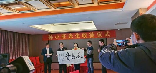 2021年1月9日,中午十一点,著名书画家孙小旺先生收徒仪式在荣元酒家举行,为响应国家抗击疫情的号召仪式一切从简办理。河南省省委相关领导出席了此次收徒仪式,对孙小旺先生喜增全维铭、范铧二位高足表示祝贺。