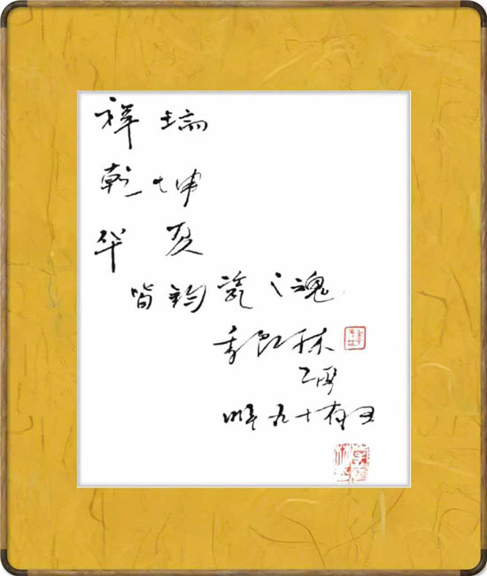 2003年,博鳌亚洲论坛首届年会,选定了大宋官窑荣昌钧瓷坊制作囯礼,以赠参会的各国元首,然而,做成怎样的造型,才能最代表中国文化?让人很让人迷茫。大宋官窑董事长苗锋伟携首席设计师张三大师张怀强专程来京,请教季羡林老先生,我也有幸参加,目睹了整个过程,所以记忆犹新。多年以来,季羡林老先生一直对钧瓷钟爱有嘉,当得知他们正在创作国礼作品,需要老人家提供建议时,很是非常高兴,当时就认为应该从《易经》中寻找文化元素: “易有太极,是生两仪,两仪生四象,四象生八卦。”