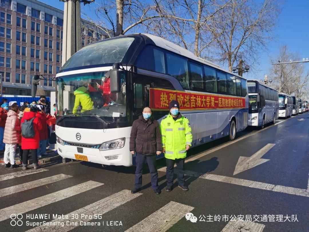 全力护航“白衣天使” 1月22日,援助岭城的吉大一院专业咽拭子采集团队返程, 岭城交警抽调10余名警力,整齐列队、敬礼! 以最高礼仪护送白衣天使回家。