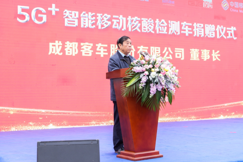 1月27日,由四川省应对新型冠状病毒肺炎疫情应急指挥部组织的5G+智能移动核酸检测车捐赠仪式在成都客车股份有限公司举行。 捐赠仪式由成都客车股份有限公司总经理王林主持,董事长王容坤出席并致辞。四川省经信厅、卫生健康委、省药监局、省红十字会分管领导,郫都区人民政府、成都市经济和信息化局、成都市卫生健康委分管领导,四川省人民医院、华西医院、省疾控中心主要负责人,成都客车股份有限公司和北京巨东康业科技有限公司相关人员出席了捐赠仪式。