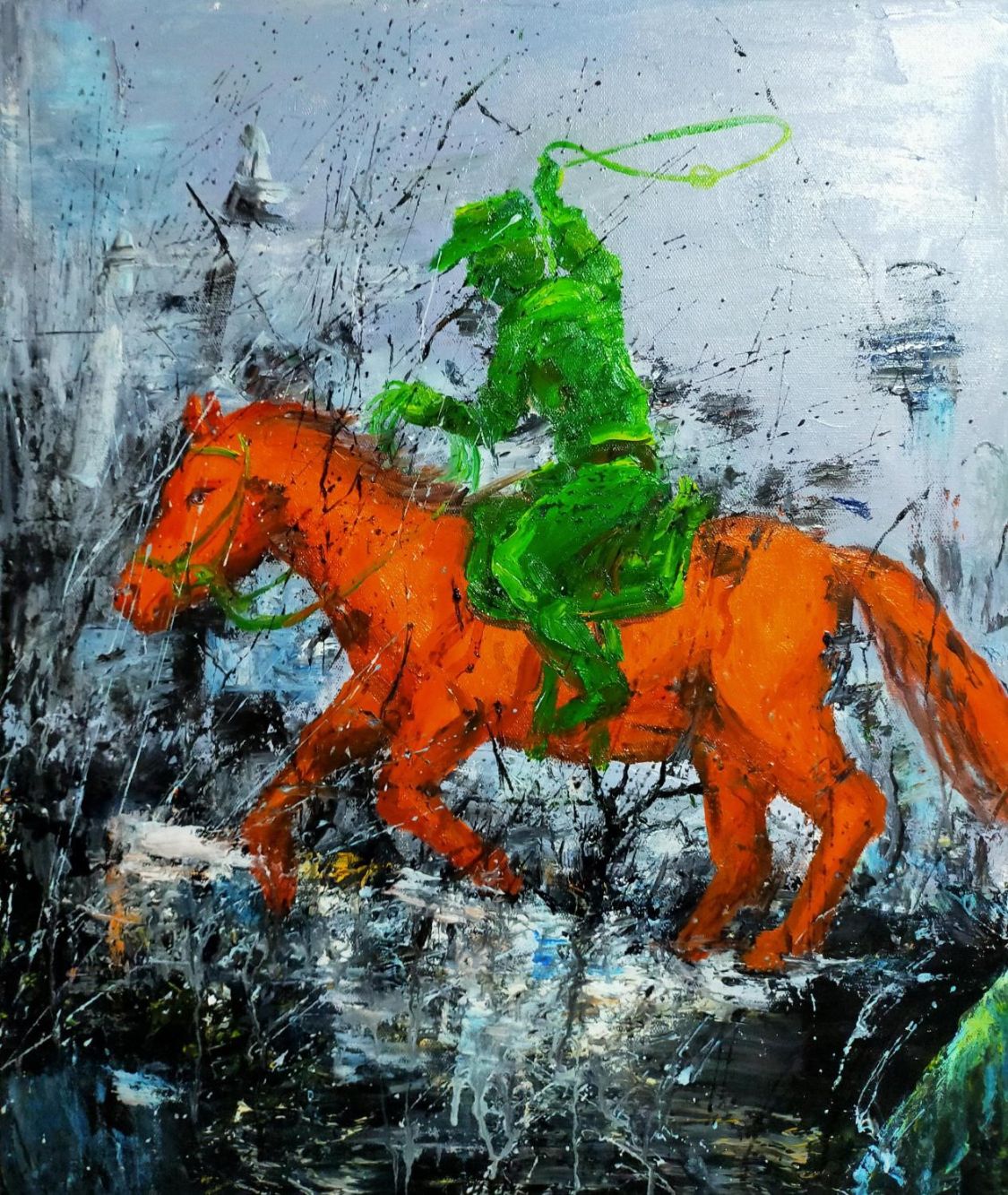 不要认为“专业”技法的精湛,会让他的画与许多专业画家的作品出现同质化的结果。潘仕业画画很专业,但是画出来的情景大有不同!牛耕图中,放大了牛的形体,缩小了人比例,焦点透视的起始点位逼立于眼前,近焦透视让画面崩发出立增百倍的视觉冲击力!立体感变化成雕塑的质感,在静态中盈发超能力量,牛的精神扑面而来,精神格局成为尘外孤标的表现!没有人尝试过这样的图构方式,他在尝试的过程中打开了油画专业但画得不一样的突破口! 他的超写实作品,还有时代影像泊驻其中,成为精神寓言的尝试。一辆锈蚀的汽车,一台失去功能的发动机!他些物象可以成为油画里的精神意象。他拥有高超的造型水准,但是绝不会把专业超能浪费在毫无意义的表达上。他不画闲物,不画泡泡,愿意画这种极有形态质感和文化质感的人文证物!物象被人格化,经遇这样的作品,必然会引涉起一段情怀,怀念一段岁月!画笔与画题为人文精神代言,这也是他风格。 除了用古典主义去创作油画的现实风骨,他还有印象主义风格去塑造人生状态。人物在画里被意象化去形象化,黑暗里篝火散发着温暖,人群围着篝火取暖,成为极有触动力的审美机关!这是一个民族独特的生存方式,与家园有关,有家人有关。潘仕业不论走到那里,记忆里的篝火总会成为他创作的源泉!用印象油画风格,去护念自己的精神家园,感动自己,也触动别人!如果再看到他用粗犷的笔触,塑造长鞭策马的形象,一定会感叹,他的画风天马行空,无有定格,有永不停息寻觅各种精彩的表现! 专业精湛,画风多元。除了油画的多元风格,潘仕业还有精彩的壁画创作成绩。他的壁画作品有很强的装饰效果,空间辽阔,色彩丰富,是公共艺术空间的杰出塑造。还创作与国际艺术接轨的立体壁画。壁上画恐龙,把艺术效果与实地需求完全地统一在一起,为当代中国壁画富有趣味做出了很好的示范!潘先生在画坛行走,拥有自信的身姿,因为多元的才华,让他可以在画坛攀得高,走得远! 著名书画评论家 史峰 2020年11月30日