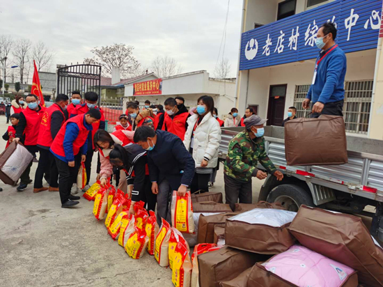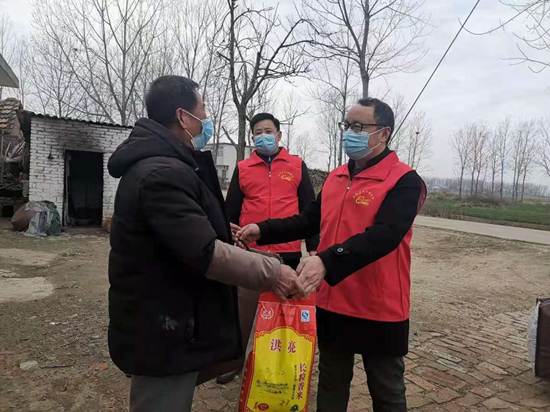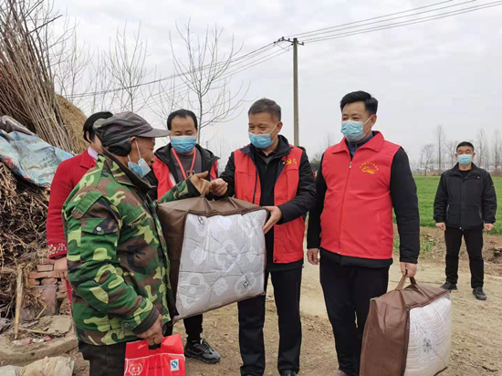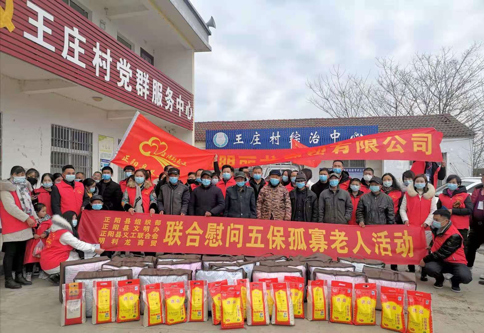 1月30日下午,正阳县委宣传部副部长、文明办主任冯伟、县委组织部办公室主任王团结、义工联合会会长郑亮、河南省明丽龙商贸有限公司总经理孙海明等领导一行先后来到兰青乡王庄村、彭桥乡老店村看望慰问孤寡老人和贫困群众,为他们送去米、棉被等慰问品和新春的祝福。