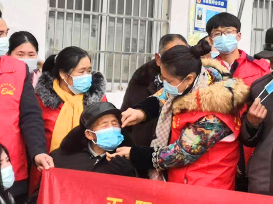 随后,他们一行来到彭桥乡老店村,在该乡党委副书记李同生和村支部书记李志甫的陪同下,志愿者们以最真挚的微笑和五保孤寡老人们打招呼,给他们送上了最温暖甜蜜的的祝福。接着,志愿者们为五保孤寡老人送上了精心准备的米、棉被等生活用品。一位老人在接过慰问品时高兴不已,激动的表示“非常感谢义工联合会的志愿者们时常都不忘我们这些老人”。