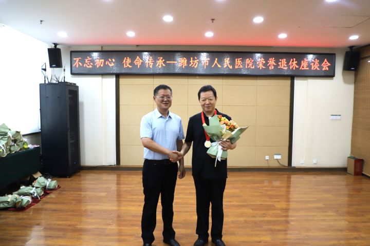 7月12日下午,医院召开“不忘初心·使命传承—潍坊市人民医院荣誉退休座谈会”。医院领导班子成员、退休干部职工和所在科室负责同志、职能部门相关科室负责同志参加座谈会。党委副书记孙丽福主持会议。 ![]() 党委书记、院长苏茂泉,副院长丁砚生、胡德建、蔡跃红为潘宝安等20名退休干部职工敬献鲜花并颁发纪念奖牌。 ![]() ![]() ![]() ![]() ![]() 原副院长潘宝安、原放射科主任耿海、原呼吸与危重症医学科主任孙开宇同志作为退休人员代表发表感言。他们饱含深情地回顾了走过的工作历程,由衷地感谢组织的培养和关爱,表示将做到退休不褪色,继续为医疗卫生事业发挥余热。消化内科主任丰义宽、放射科主任王琦作为科主任代表发言,对前辈们为科室建设付出的智慧、心血和汗水表示感谢,并表态会传承前辈身上的优秀品格和过硬作风,学习他们工作上的好做法好经验,带领科室砥砺奋进、再创辉煌。 苏茂泉书记代表院党委向为医院建设和发展做出重要贡献的退休干部职工表示衷心的感谢并致以崇高敬意。他表示,医院各项成绩的取得,凝聚着前辈们的无私奉献和艰苦奋斗,他们的付出和担当将永远铭刻在医院的历史丰碑上。医院的高速度高质量发展,仍需要广大在职职工和退休职工的携手共进,衷心希望前辈们一如既往地关心、支持医院的建设和发展,继续发扬“传、帮、带”优良传统,指导年轻人更好更快地成长成才,齐心协力把医院建设得更加美好。医院也将继续用心用力用情解决好大家遇到的困难,全力做好退休人员的服务保障工作。 座谈会结束后,院领导和退休干部职工一起合影留念。 供稿 | 人力资源部 刘向前 邢洋 编辑 | 王娜 |