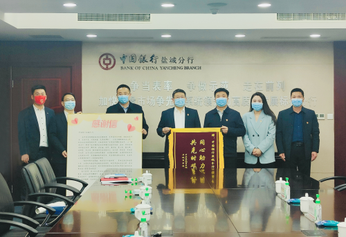 4月7日下午,中国银行盐城分行储晓庆行长接待亭湖区政府五星街道党工委书记陈尚书一行,盐城中行谭甬纪委书记及相关人员陪同。 在3月26日的全市全域核酸检测演练中,盐城中行青年主动出列组建防疫志愿者服务队,“志愿红”温暖雅和社区疫情防控一线。此次来访,陈尚书书记代表亭湖区政府五星街道向盐城中行赠送锦旗、感谢信。