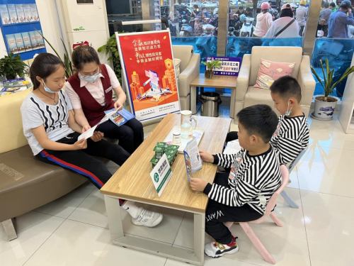 本次活动采取多种渠道和方式,一是通过走马屏、海报展示金融知识相关信息,并在厅堂布置相关系列读本和宣传折页供客户翻阅;二是邀请周围放学后的小朋友和家长来网点参加为其设计的专属的简单易懂的金融课堂,通过实物讲解、图片展示、金融知识问答等形式激发学习兴趣,将枯燥的金融知识变得生动有趣、通俗易懂。课堂围绕“人民币真伪”、“银行卡知识”展开讲解,让孩子们对金融有更加形象的认识。(王倩倩)